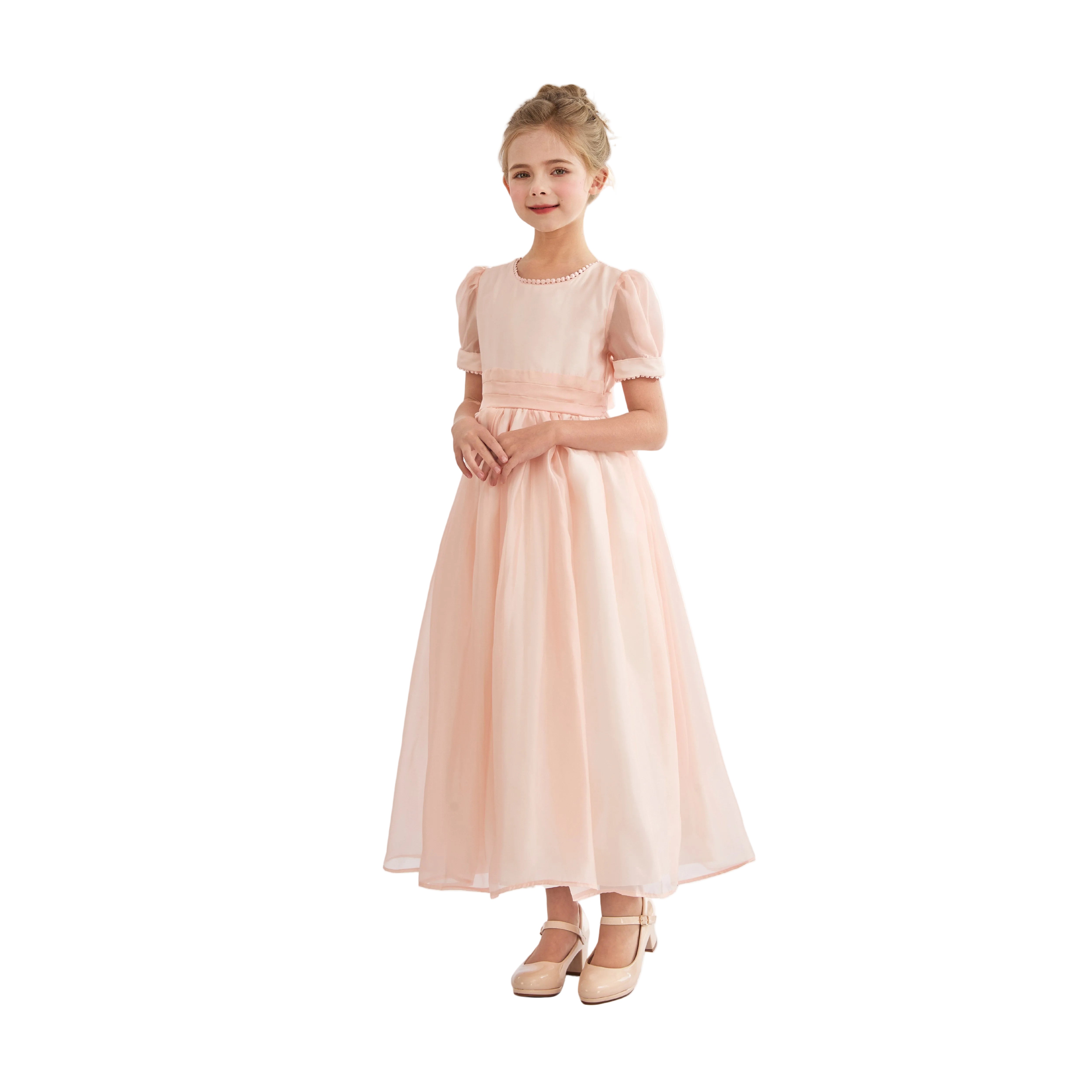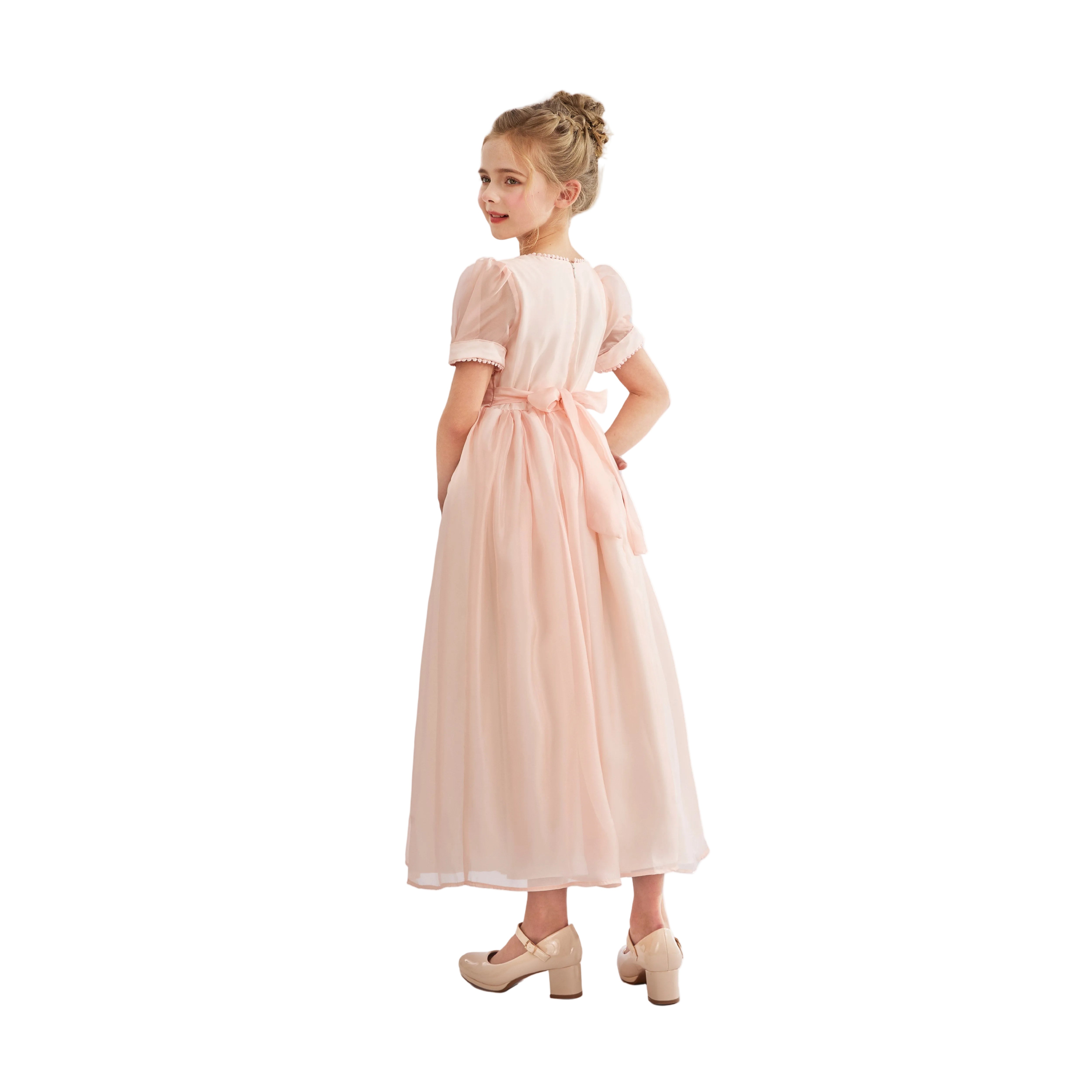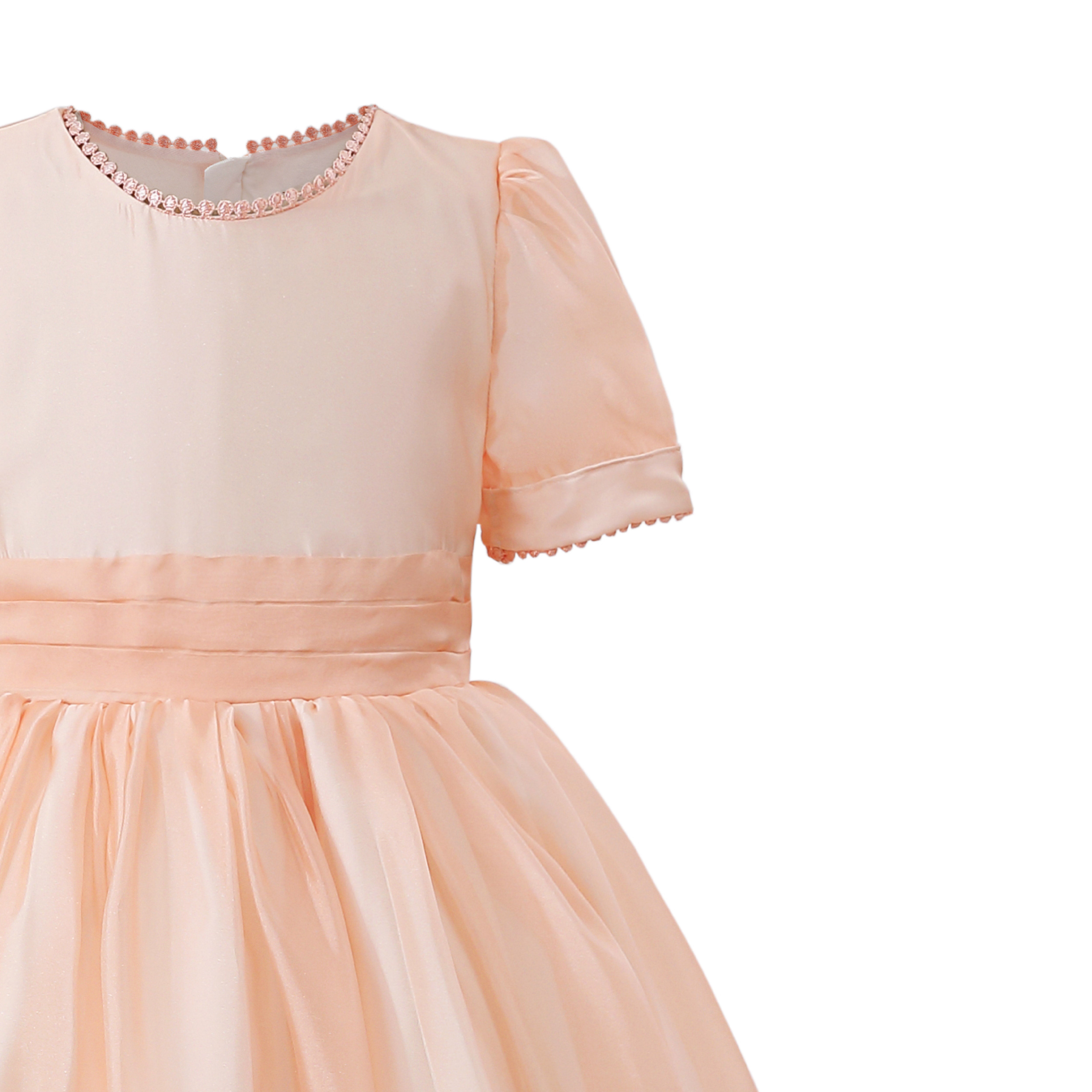 A graceful occasion dress designed with timeless elegance, perfect for weddings, or formal ceremonies. Crafted with lightweight layers for a voluminous silhouette and a polished finish.