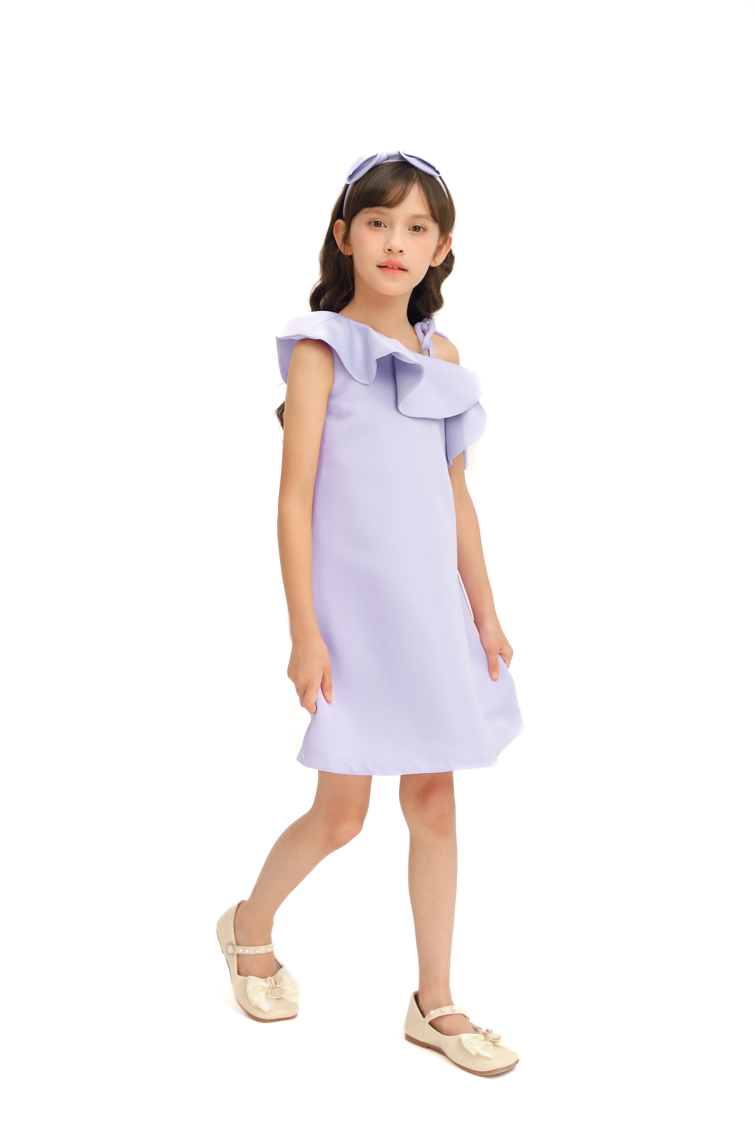 Designed to be dry cleaned only, this dress maintains its quality and exquisite appearance over time. Overall, the Purple Petulla Off Shoulder Ruffle Dress combines elegance, comfort, and whimsical design elements, making it a perfect addition to any young girl's wardrobe. This dress ensures your child looks and feels special at any event.