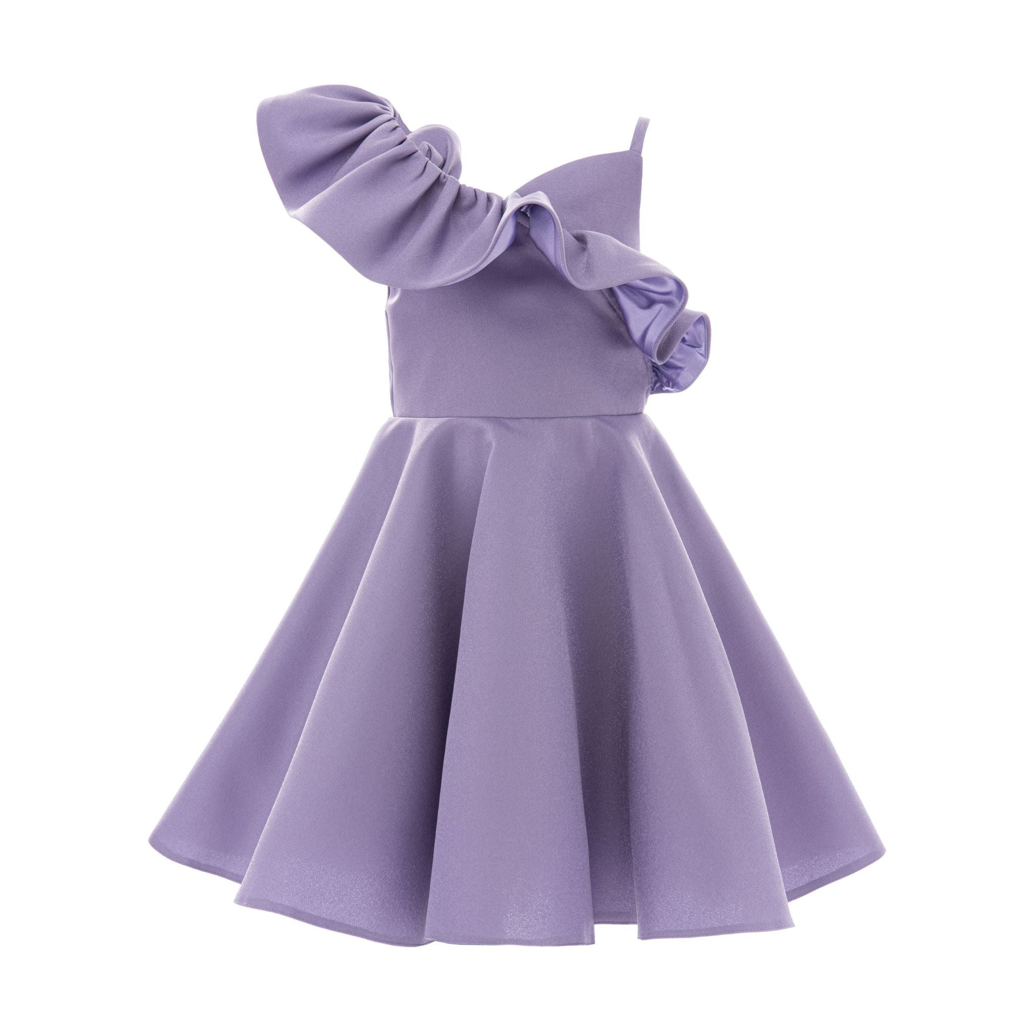 The Purple Riviera Off Shoulder Ruffle Dress for kid girls from Tulleen combines elegance and playfulness, perfect for special occasions. This dress features an off shoulder ruffle design, adding a playful flair and delicate charm to the neckline.