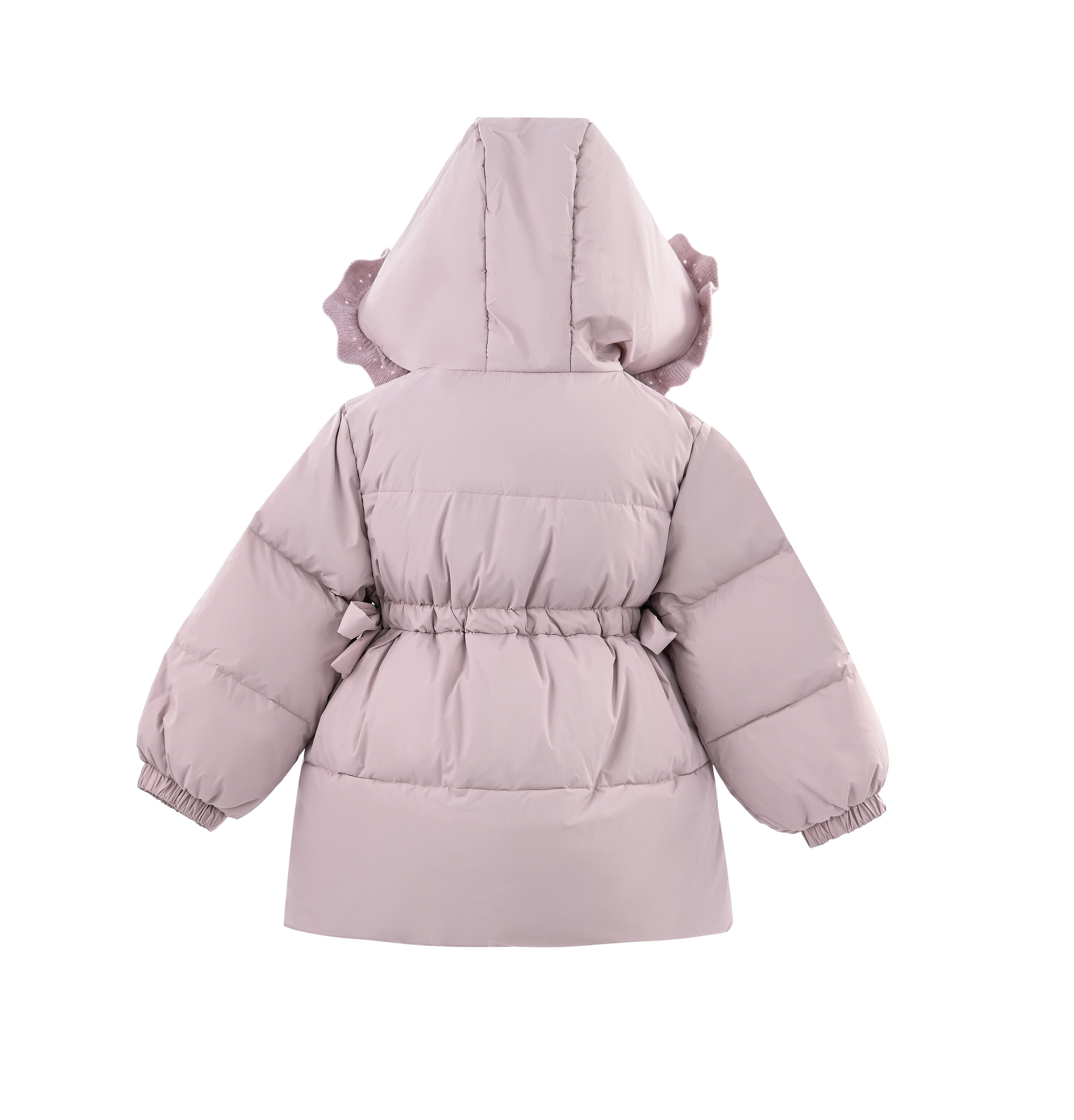 A winter-ready favorite with a touch of charm—this padded purple coat keeps little ones warm while adding a playful twist with its ruffled hood and coordinating scarf. Designed for comfort, movement, and style all season long.