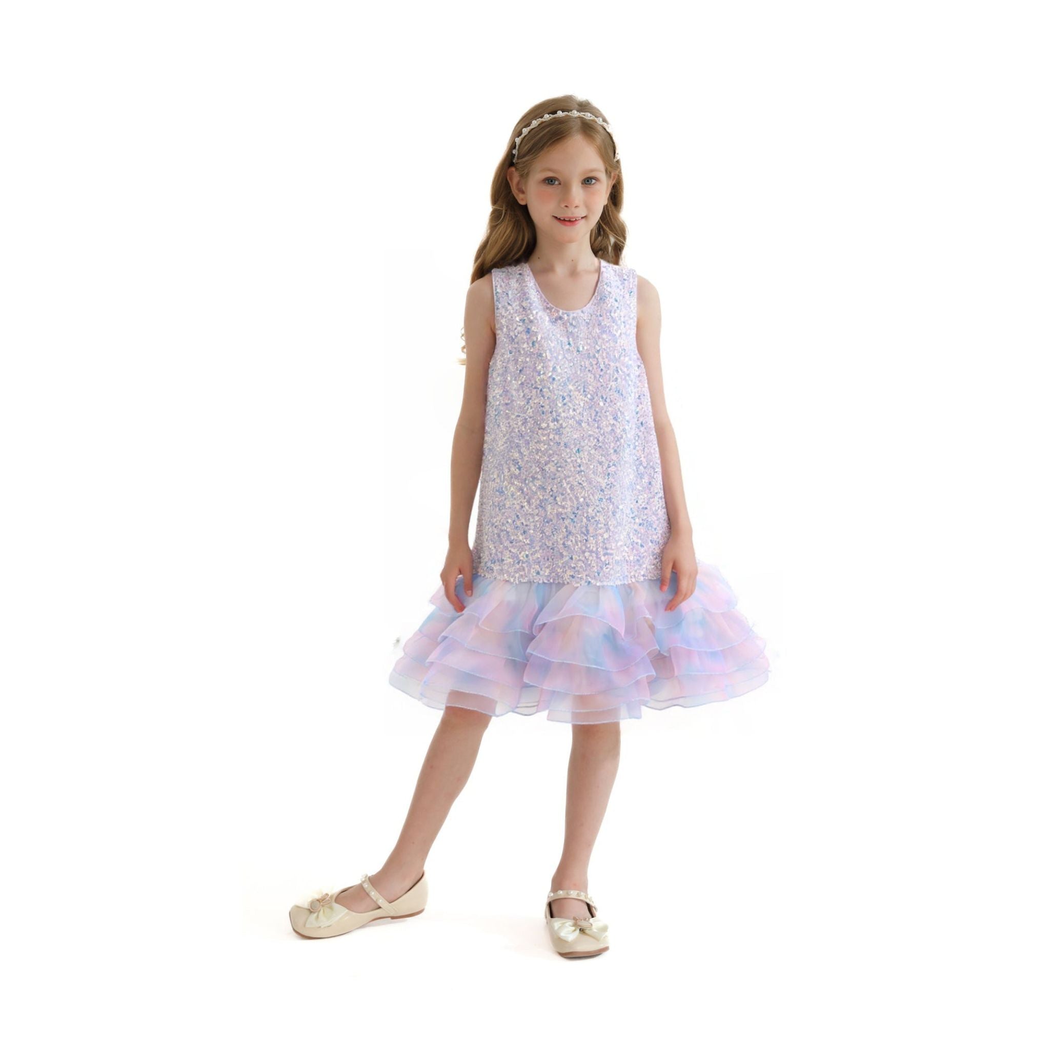 Layers of soft tulle add graceful volume and dreamy movement, creating a silhouette that floats and twirls with ease. The subtle sparkle woven throughout catches the light from every angle, making each step and spin feel magical. Whether she's dancing under chandeliers or posing for keepsake portraits, the Purple Sparkling Cecilia Dress is designed to dazzle.
