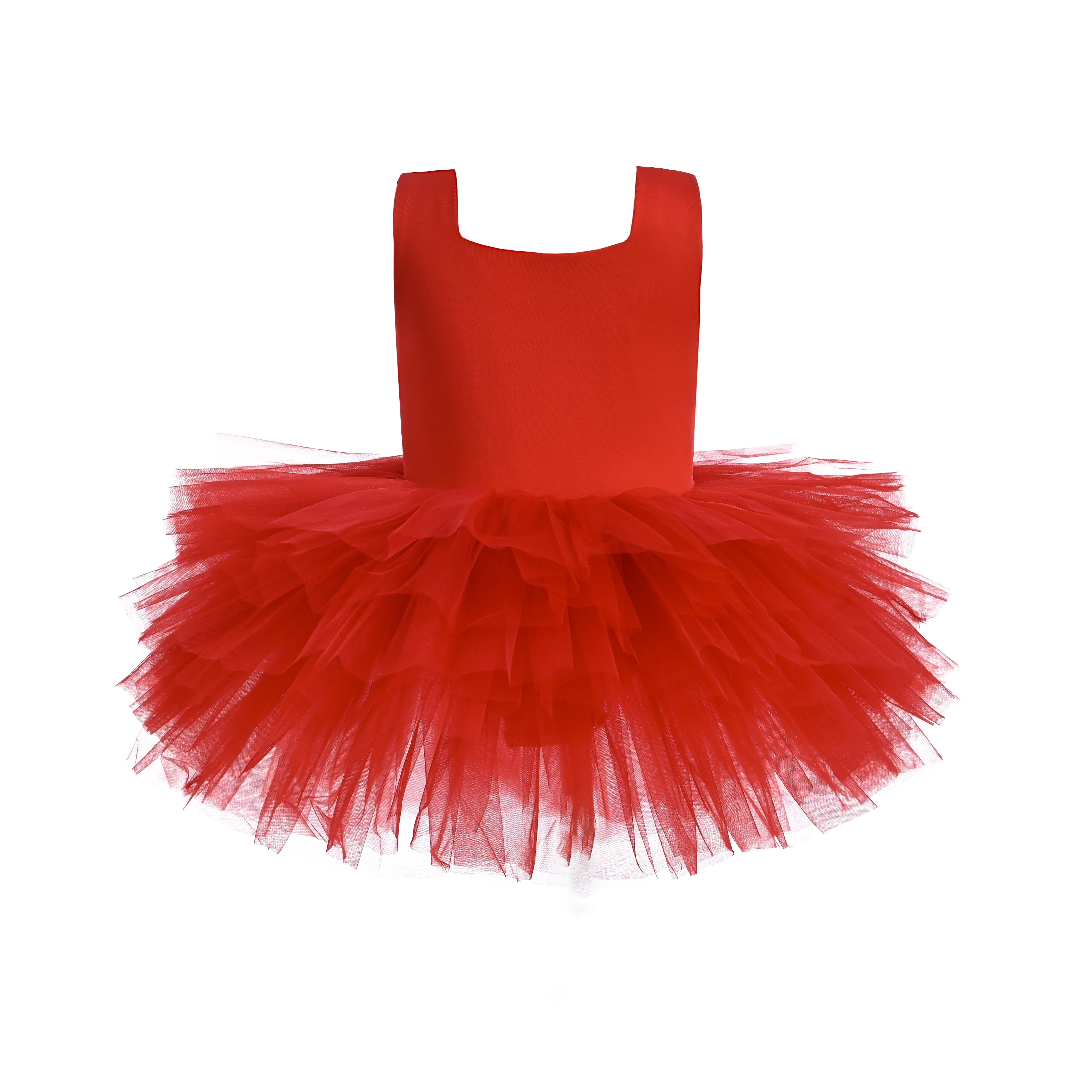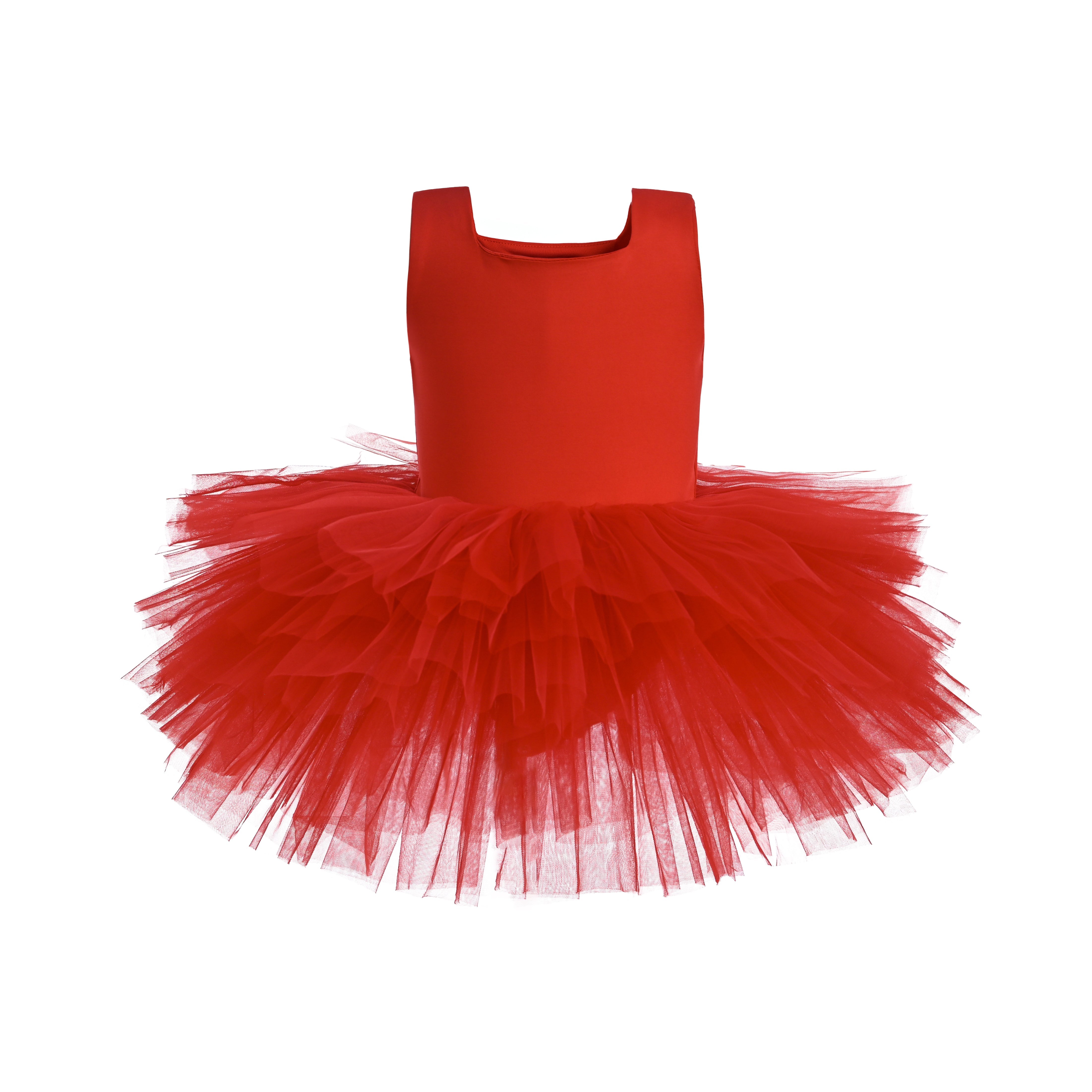 The Red Layered Leotard radiates vibrant energy and bold charm with its rich, striking color. Featuring soft tulle layers that bloom from the waist, it creates a voluminous, tutu-like shape that flows with every step and spin.