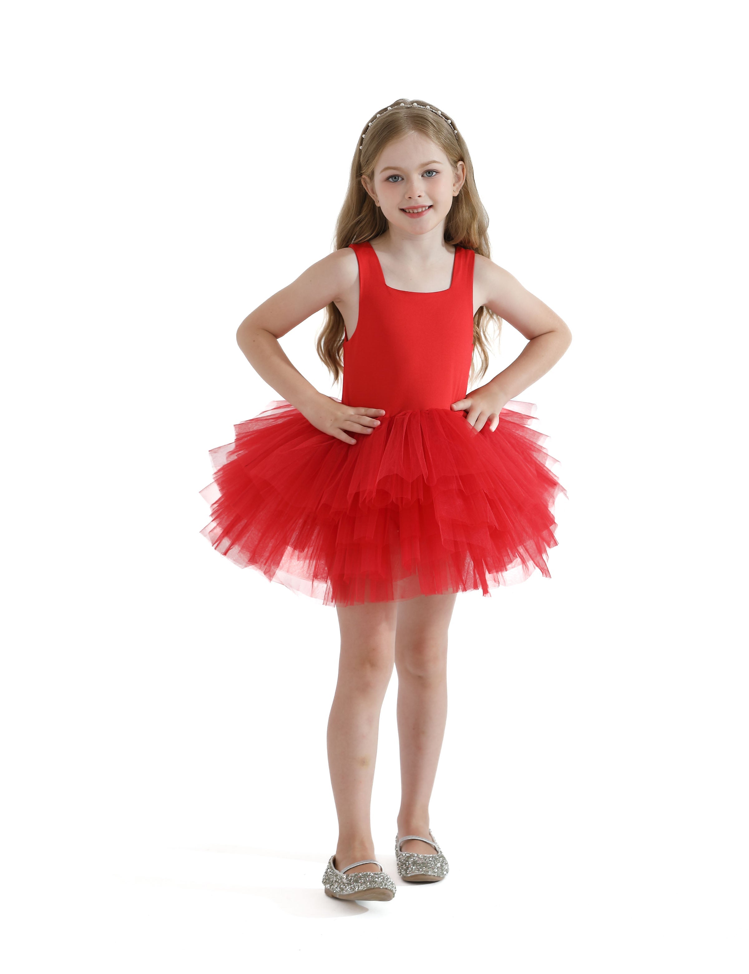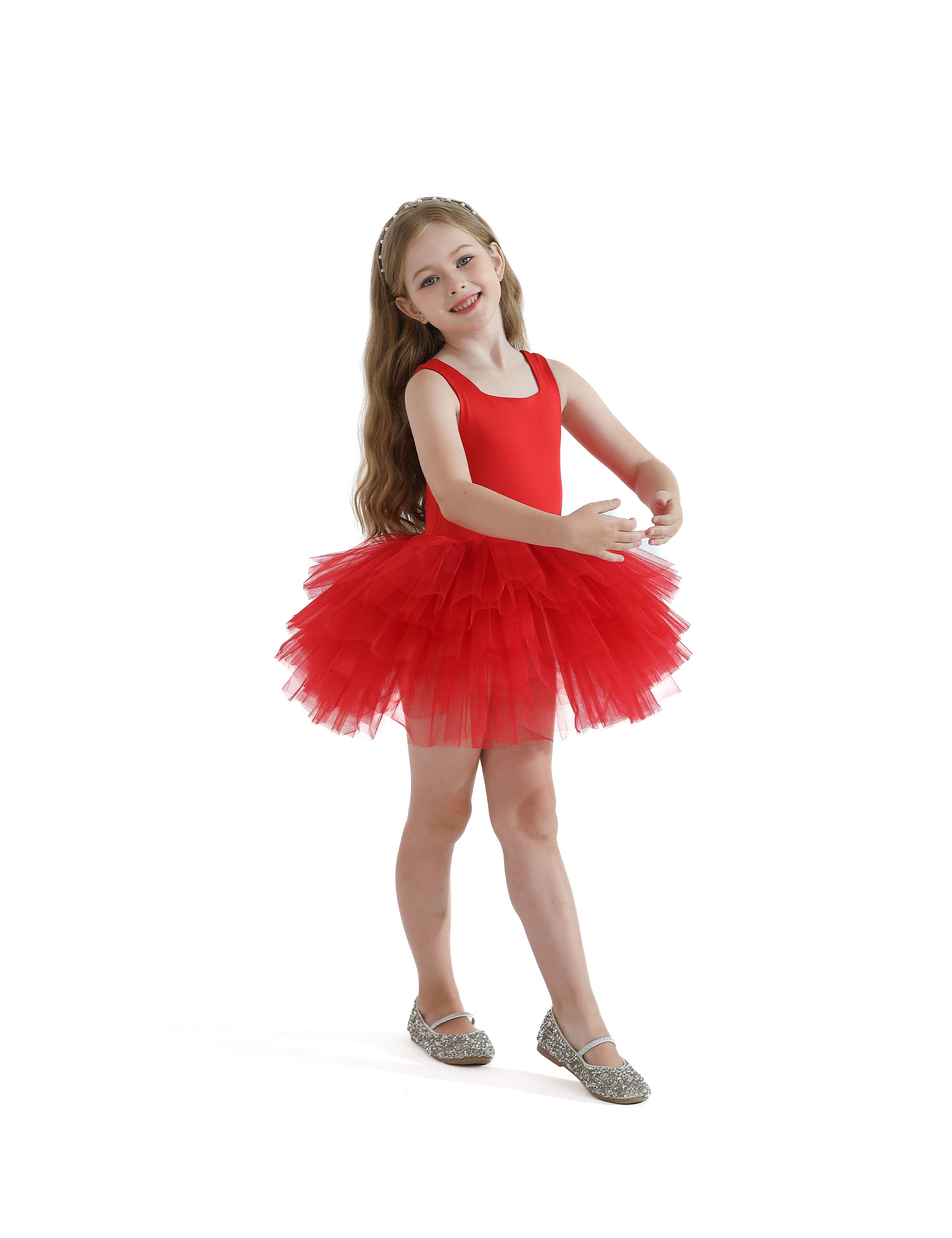 The Red Layered Leotard radiates vibrant energy and bold charm with its rich, striking color. Featuring soft tulle layers that bloom from the waist, it creates a voluminous, tutu-like shape that flows with every step and spin.