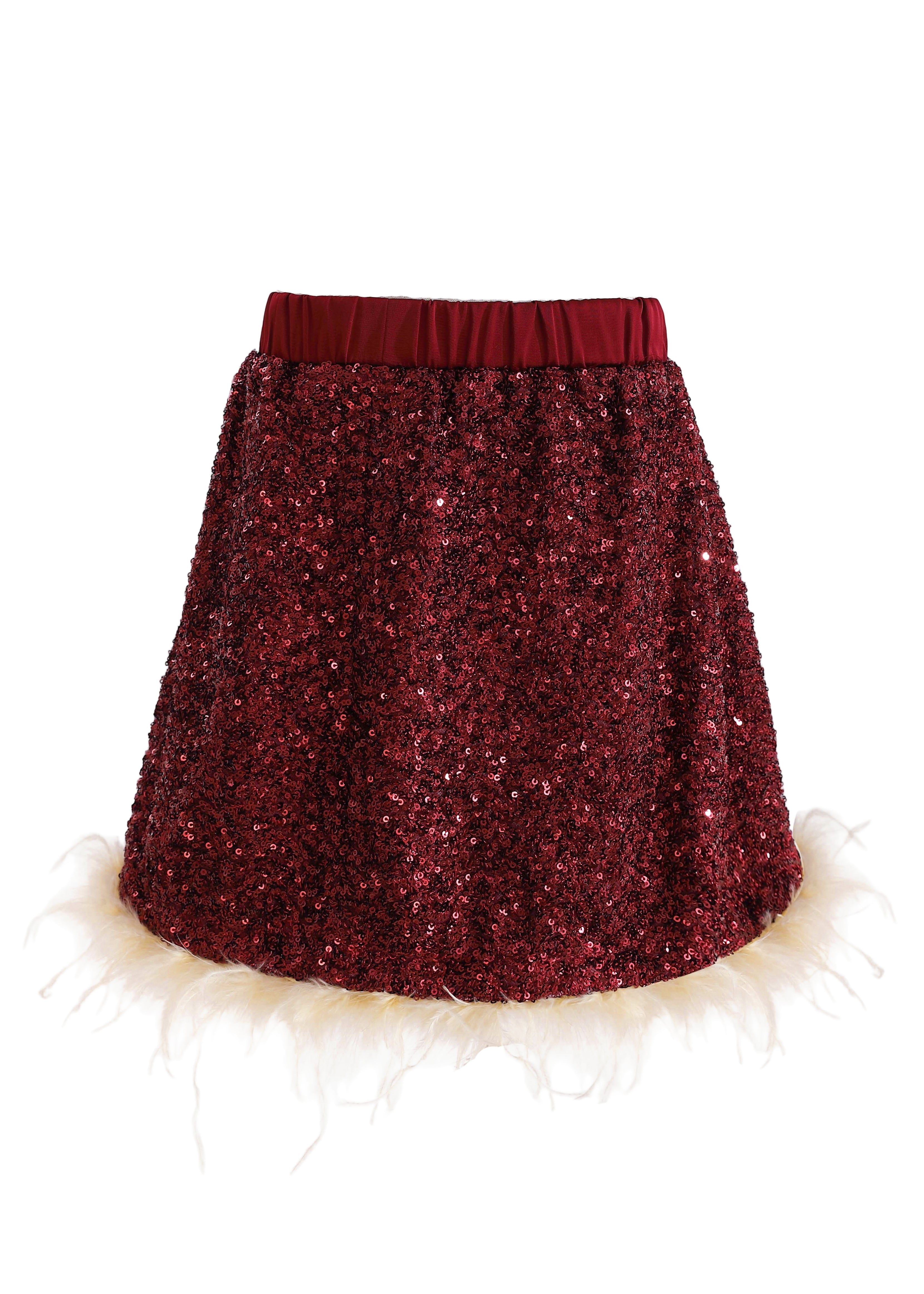 A dazzling duo designed for standout moments, this red set pairs shimmering sequins with soft feather accents for a look that’s both glamorous and playful. Perfect for parties, photoshoots, or any occasion that calls for sparkle.