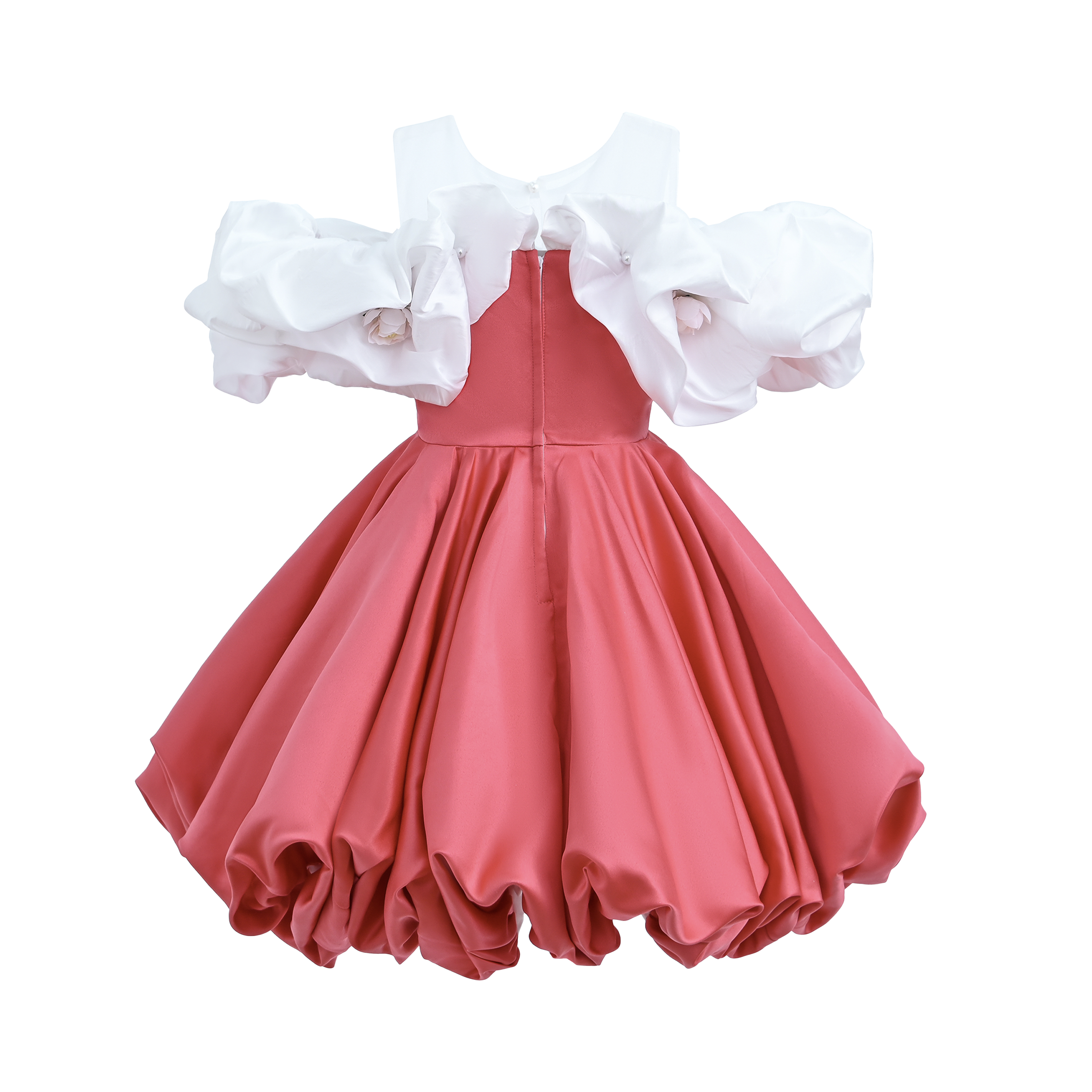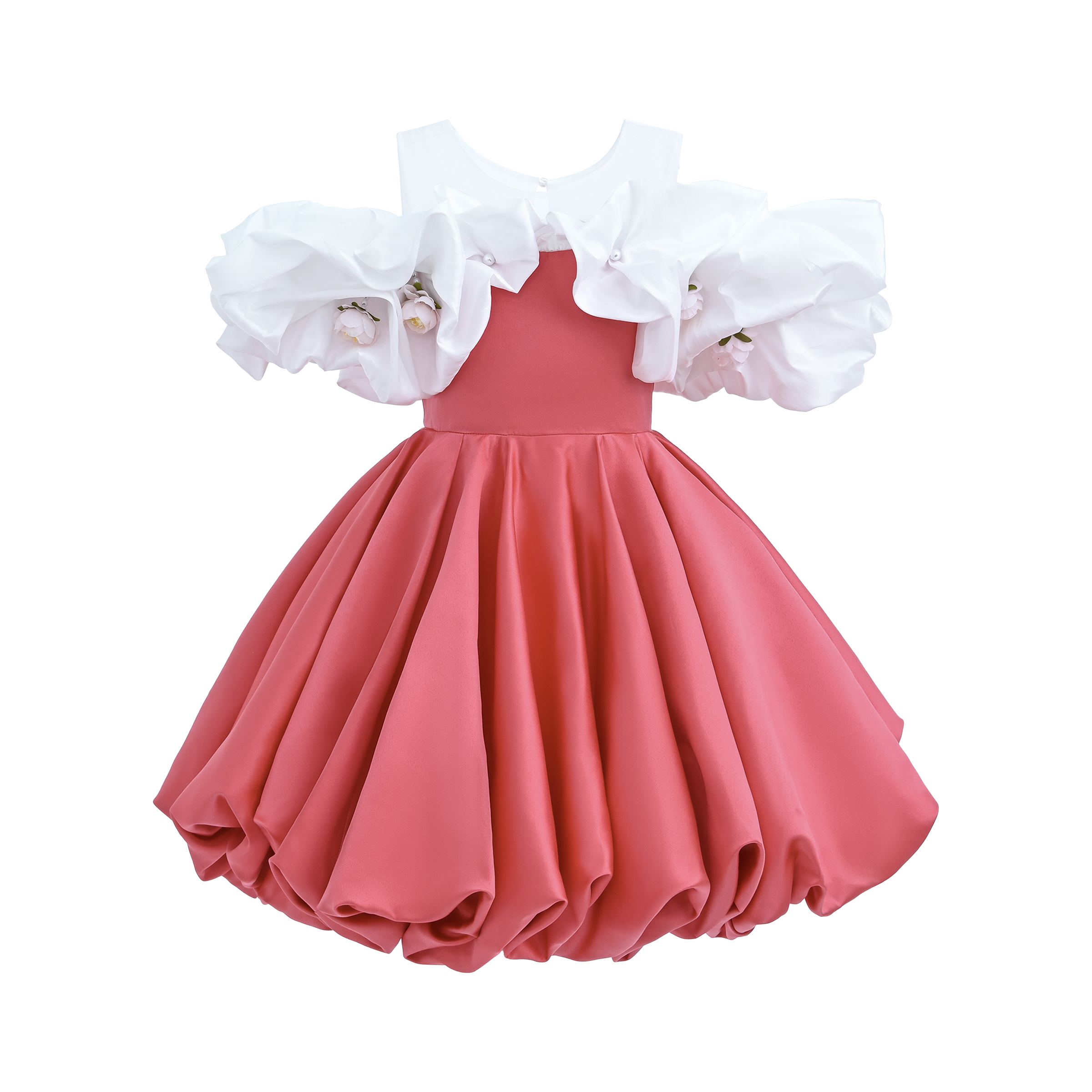 Introducing the stunning Red Silhouette White Sleeve Isadora Dress by Tulleen, a striking ensemble designed for young girls with an eye for elegance. This captivating dress features a reddish-pink silhouette paired with crisp white sleeves and a matching neckline, creating a beautifully balanced contrast that radiates sophistication.
