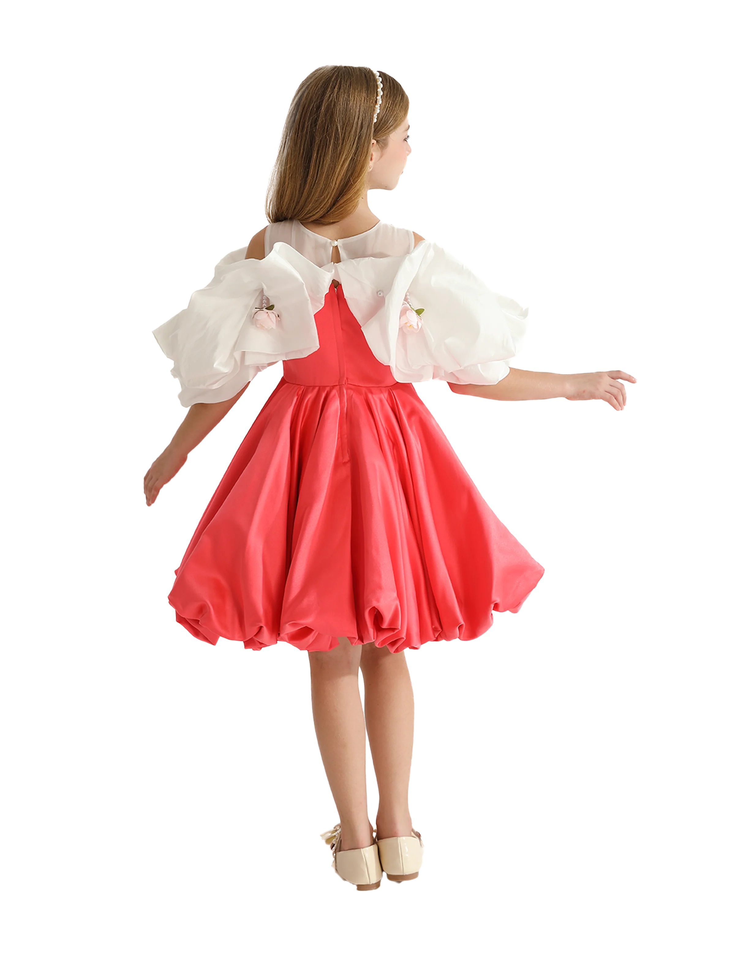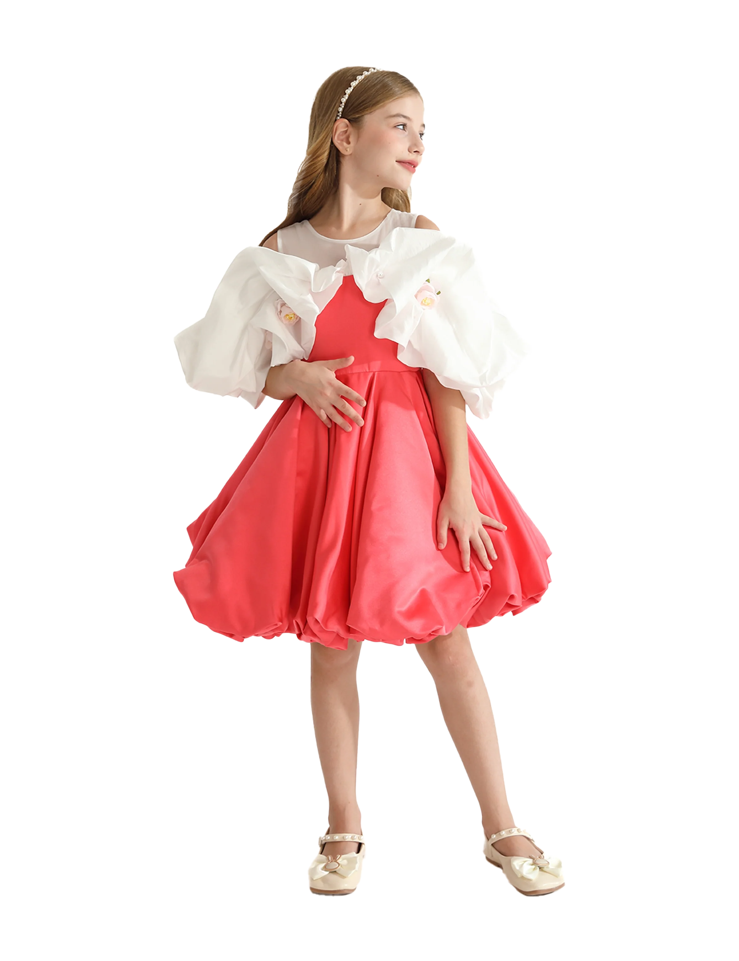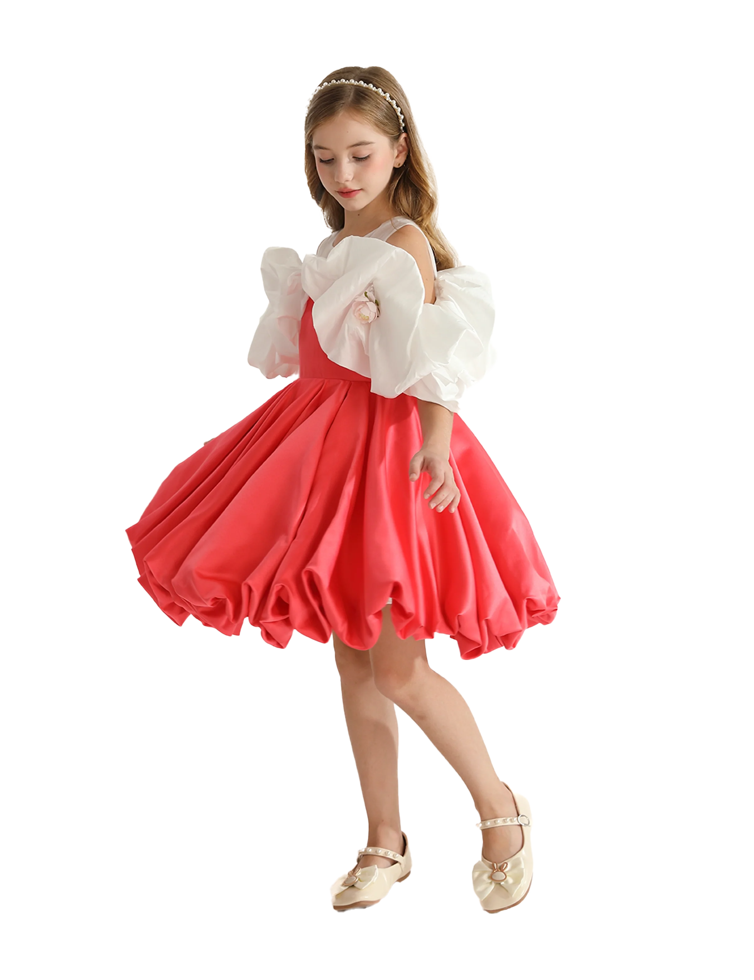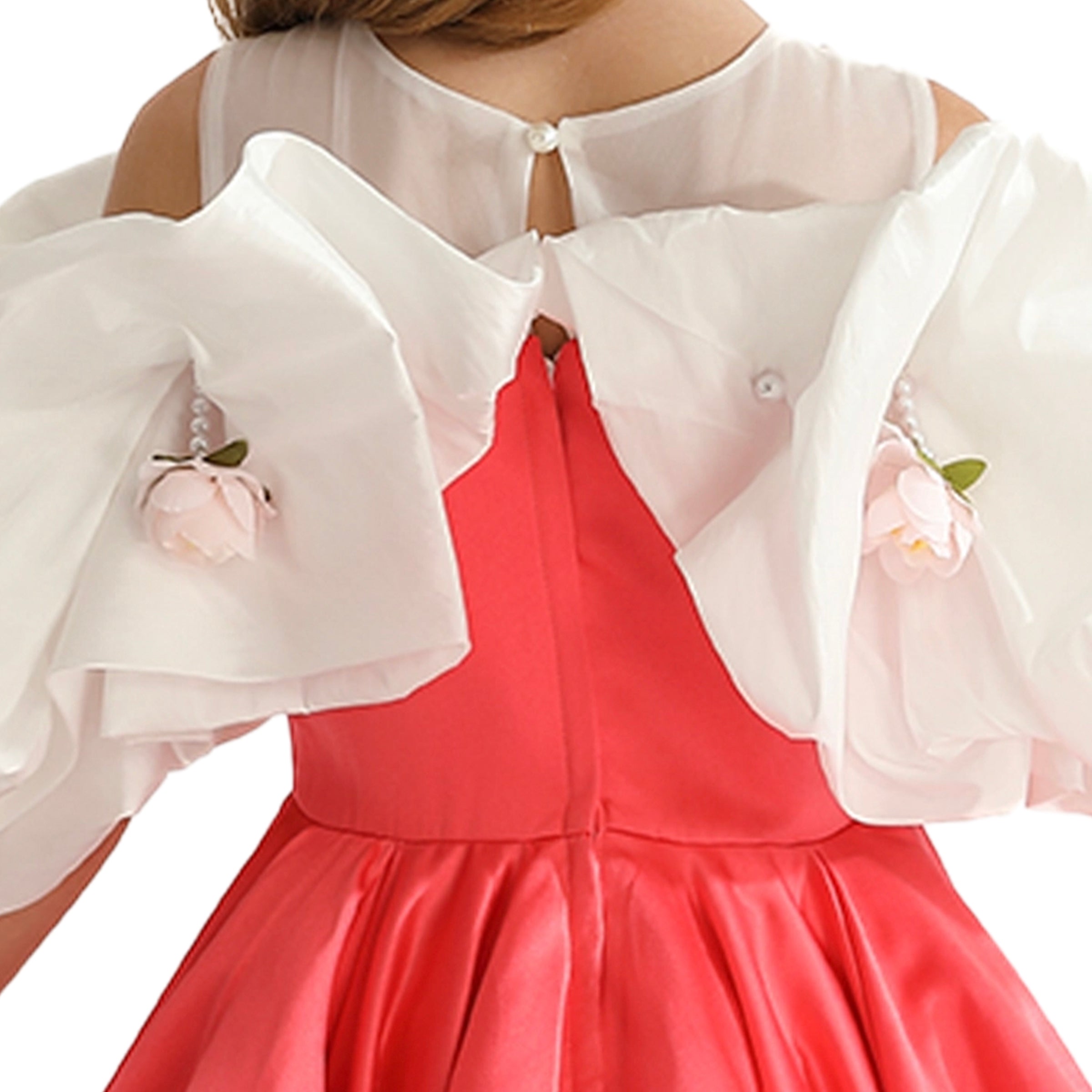 The Red Silhouette White Sleeve Isadora Dress by Tulleen is a chic statement piece that combines contemporary flair with youthful grace, making it a wardrobe essential for stylish young girls.