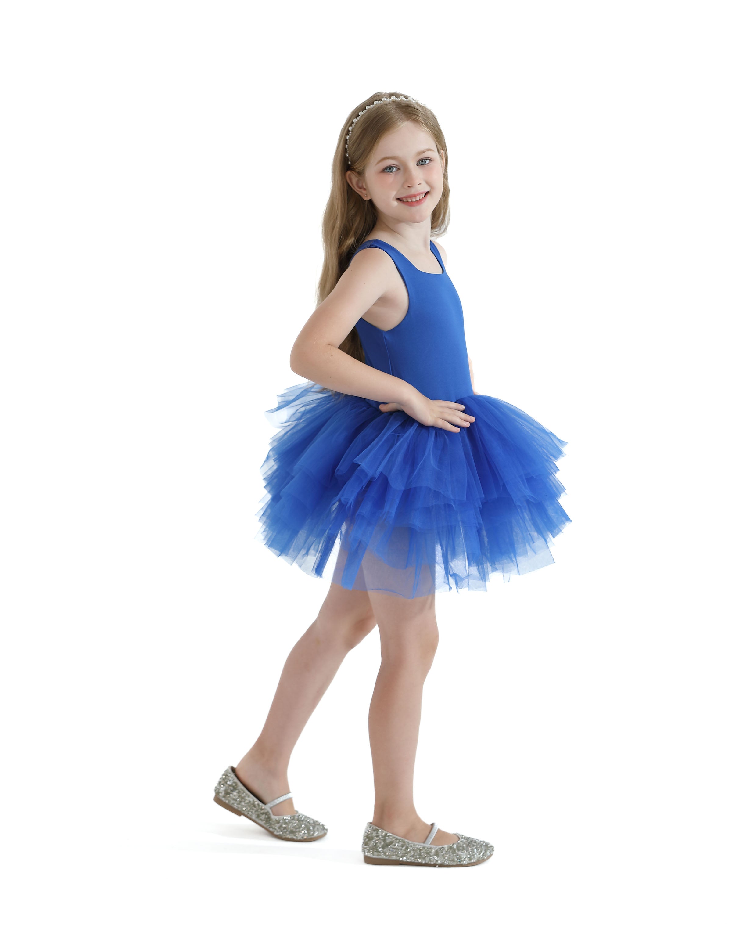 Whether for dance, recital, or imaginative play, the Royal Blue Layered Leotard brings a delightful blend of charm and confidence to any young wardrobe.