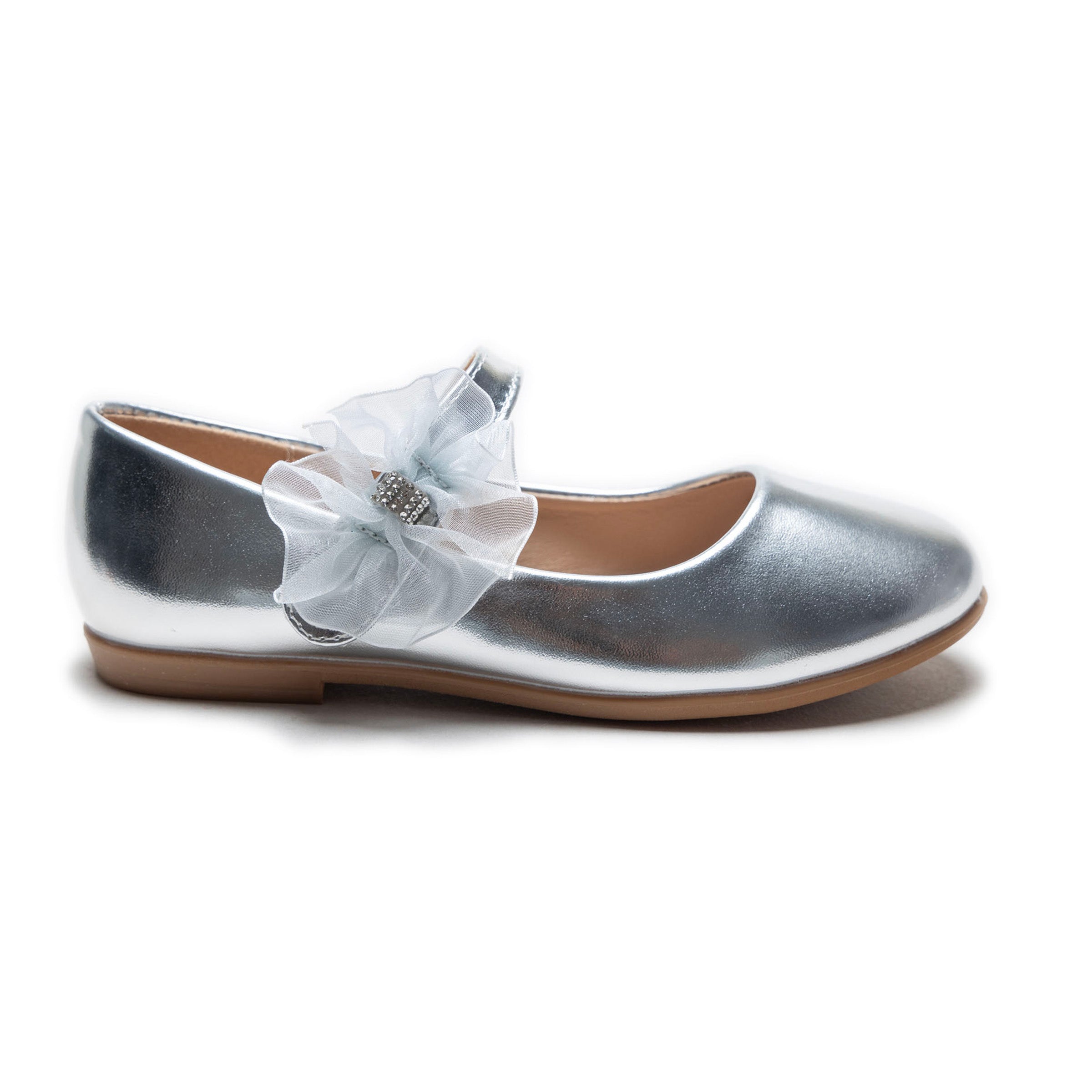 The Silver Haile Rhinestone Flower Flats by Tulleen blend luxury with effortless charm, making them an ideal choice for both everyday wear and more formal occasions. Their elegant yet playful design makes them a must-have for any young girl’s wardrobe.