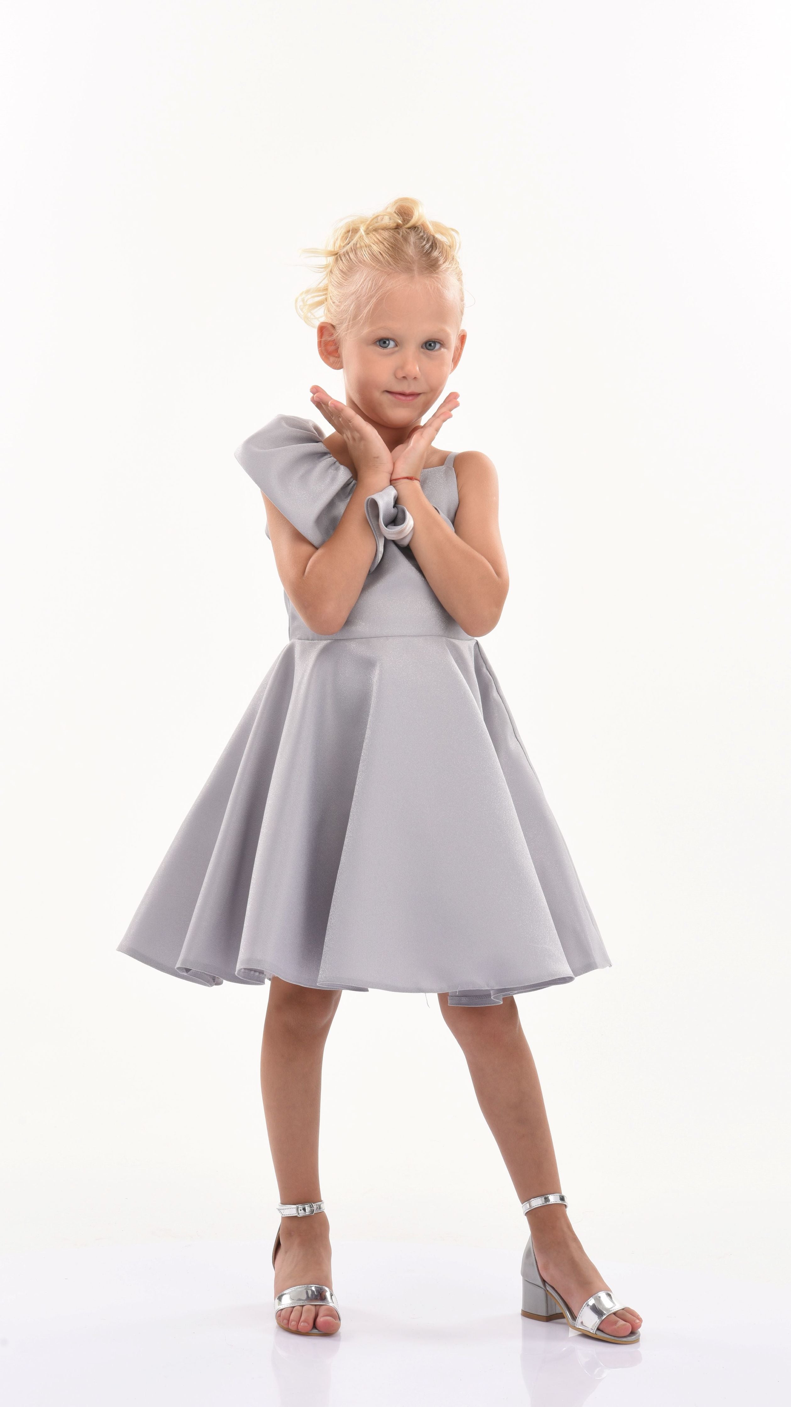 Overall, the Silver Riviera Off Shoulder Ruffle Dress combines elegance, comfort, and playful design elements, making it a perfect addition to any young girl's wardrobe. This dress ensures your child looks and feels special at any event.