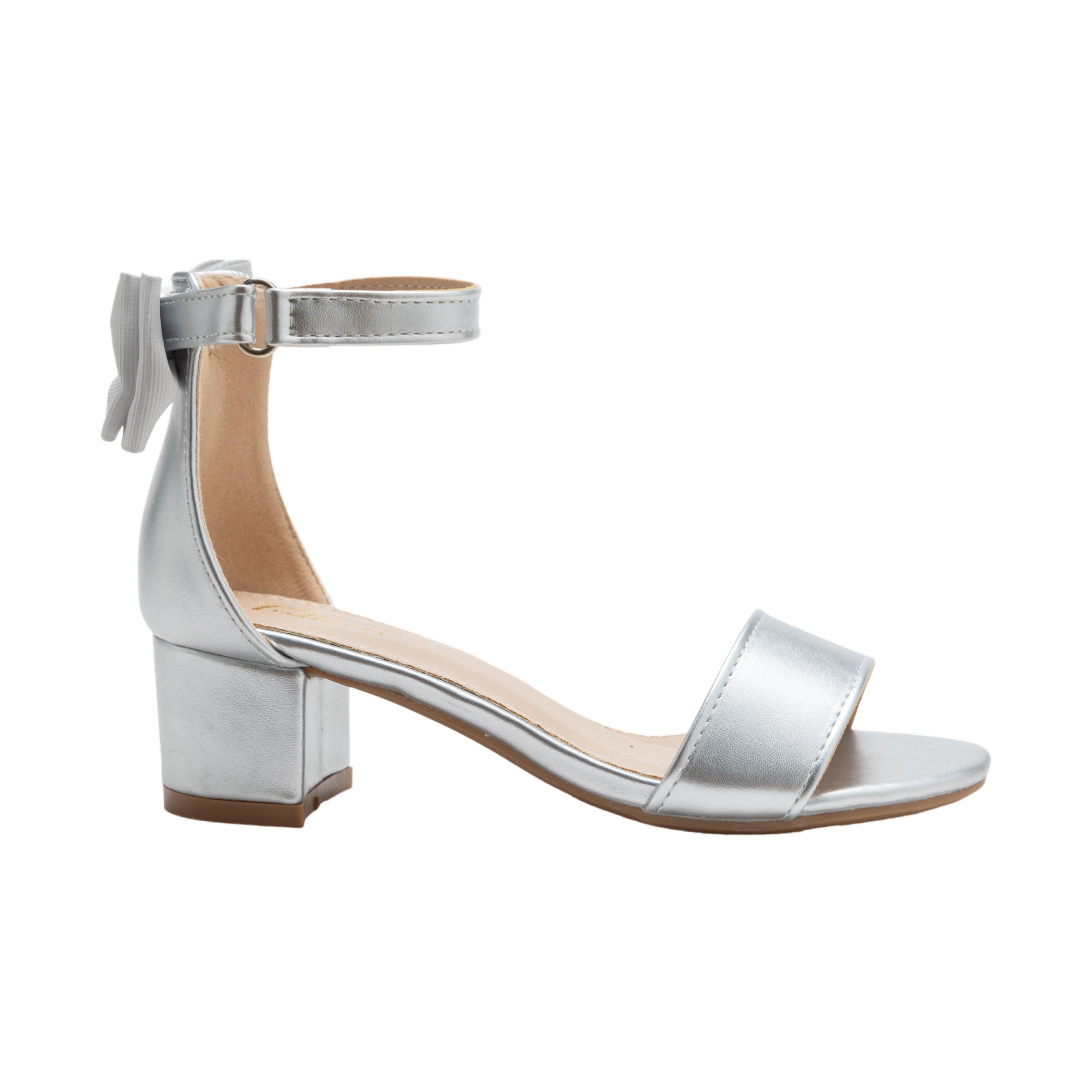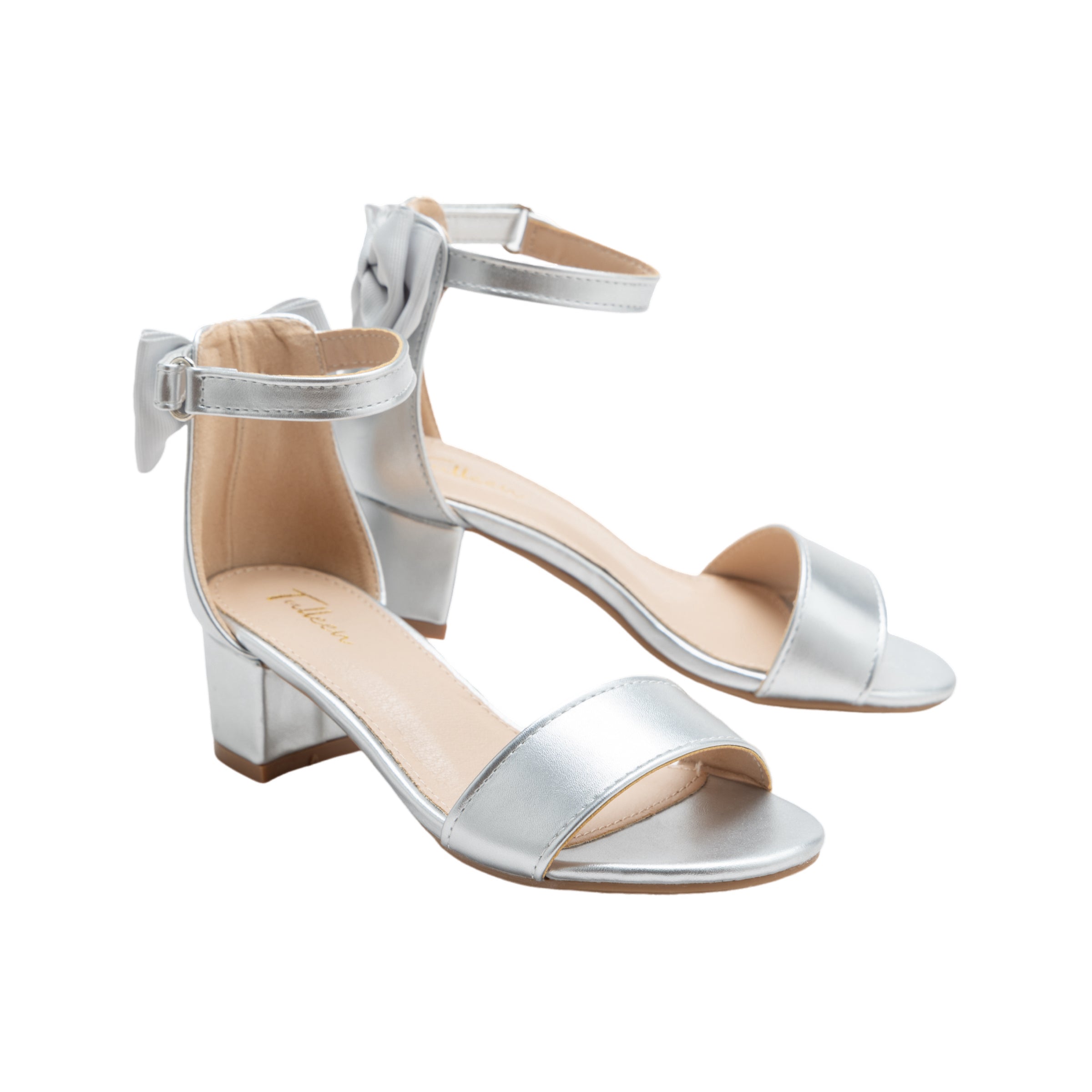 Introducing the Silver Satin Banded Block Heels by Tulleen, showcasing a sophisticated grey-silver satin finish that radiates charm and elegance. The plush satin texture adds a refined touch to these heels, making them an ideal choice for little girls who appreciate a stylish and graceful look.