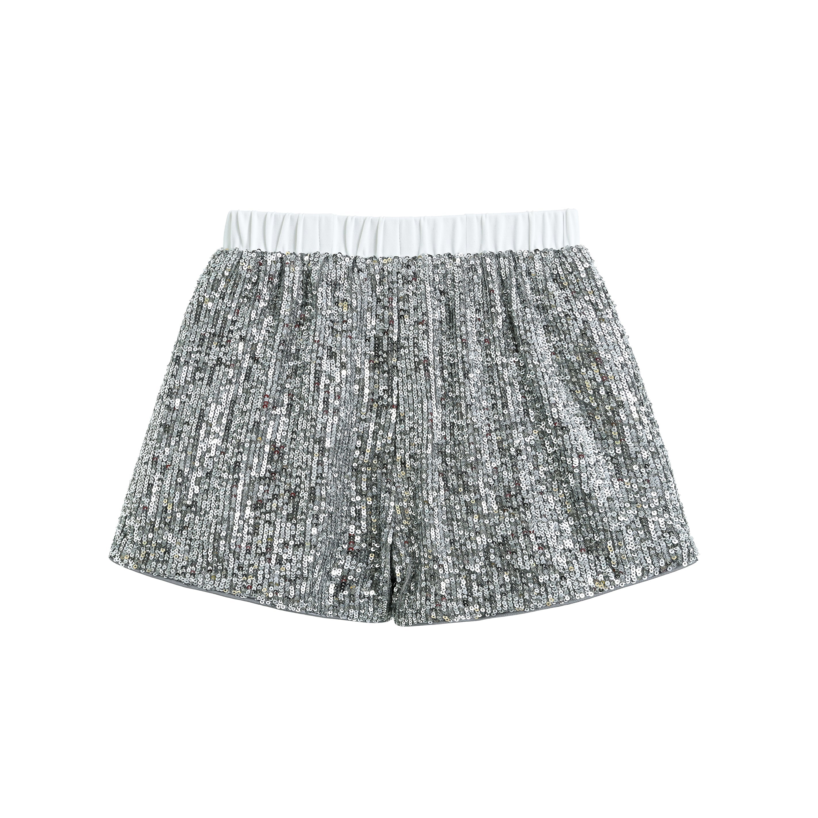Silver Sequin Sleeveless Shorts Set