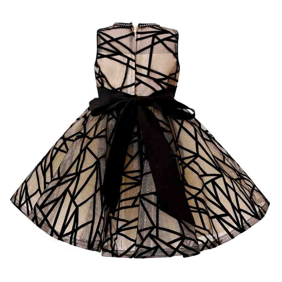 A refined design that blends soft tones with delicate detailing, perfect for weddings, birthdays, or formal gatherings. The flared skirt and ribbon waist create a graceful silhouette with timeless charm.