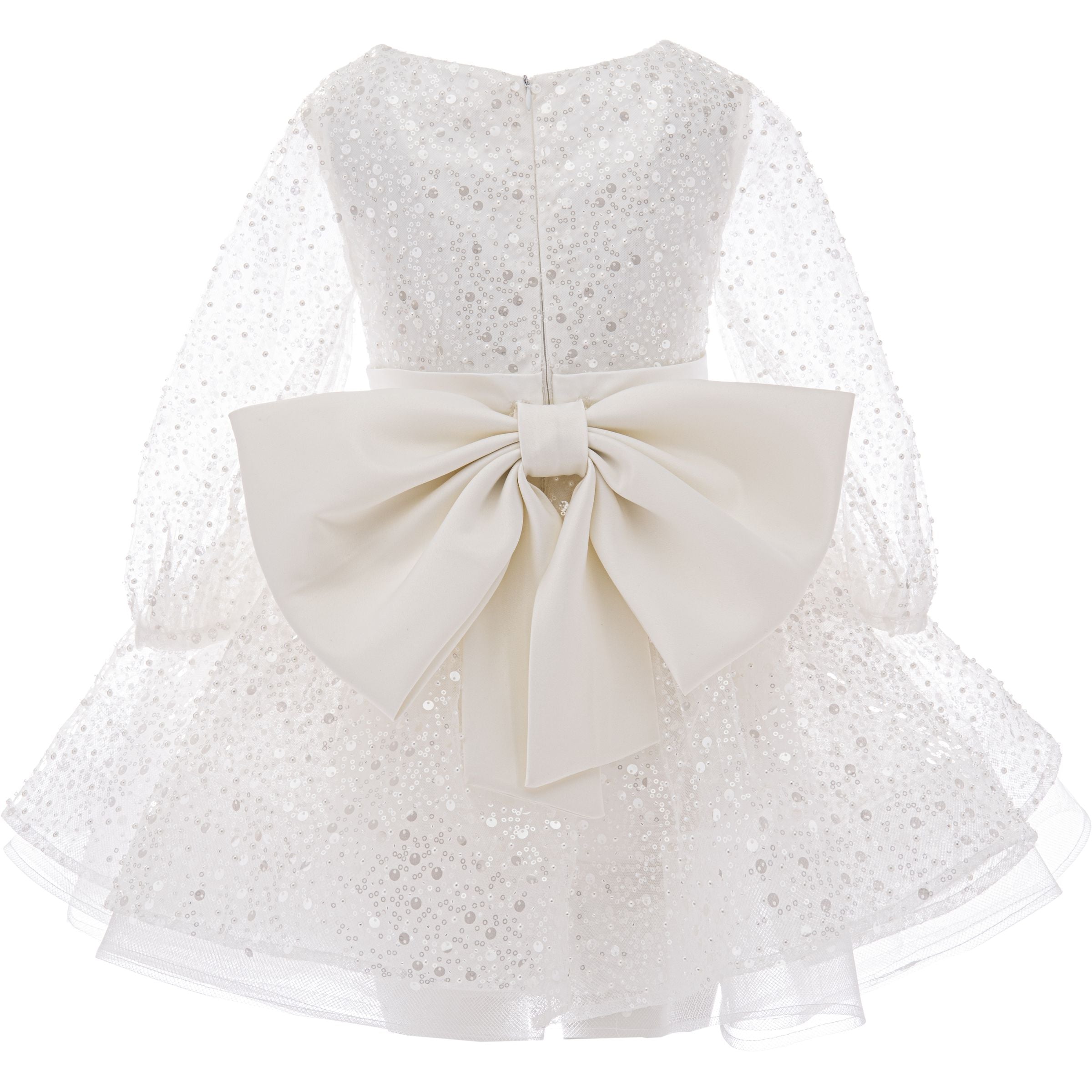Pearl White Pradera Glimmer Tulle Bow Dress