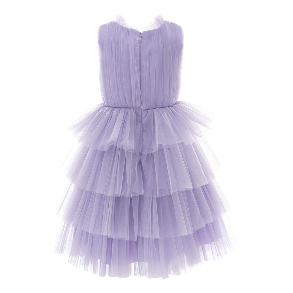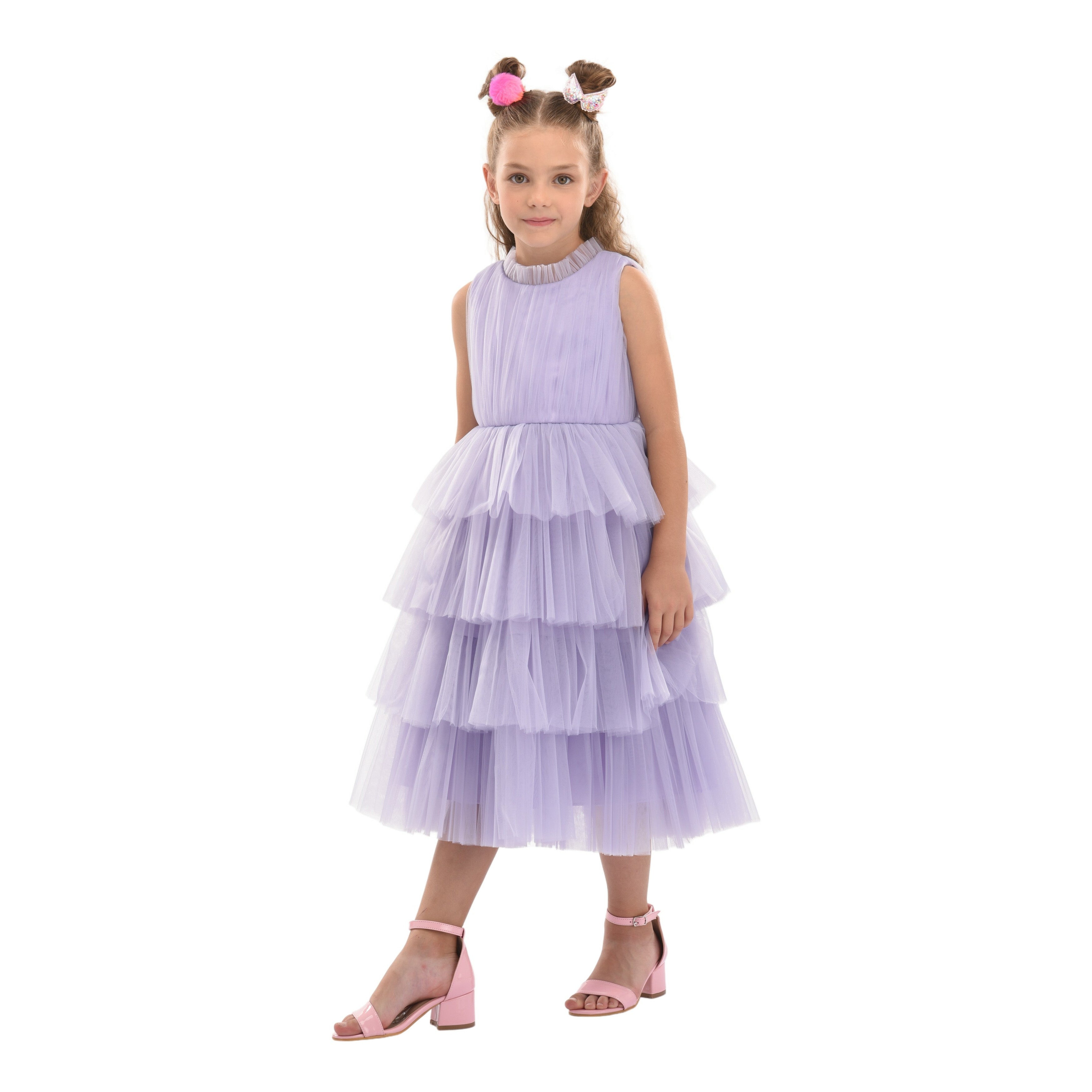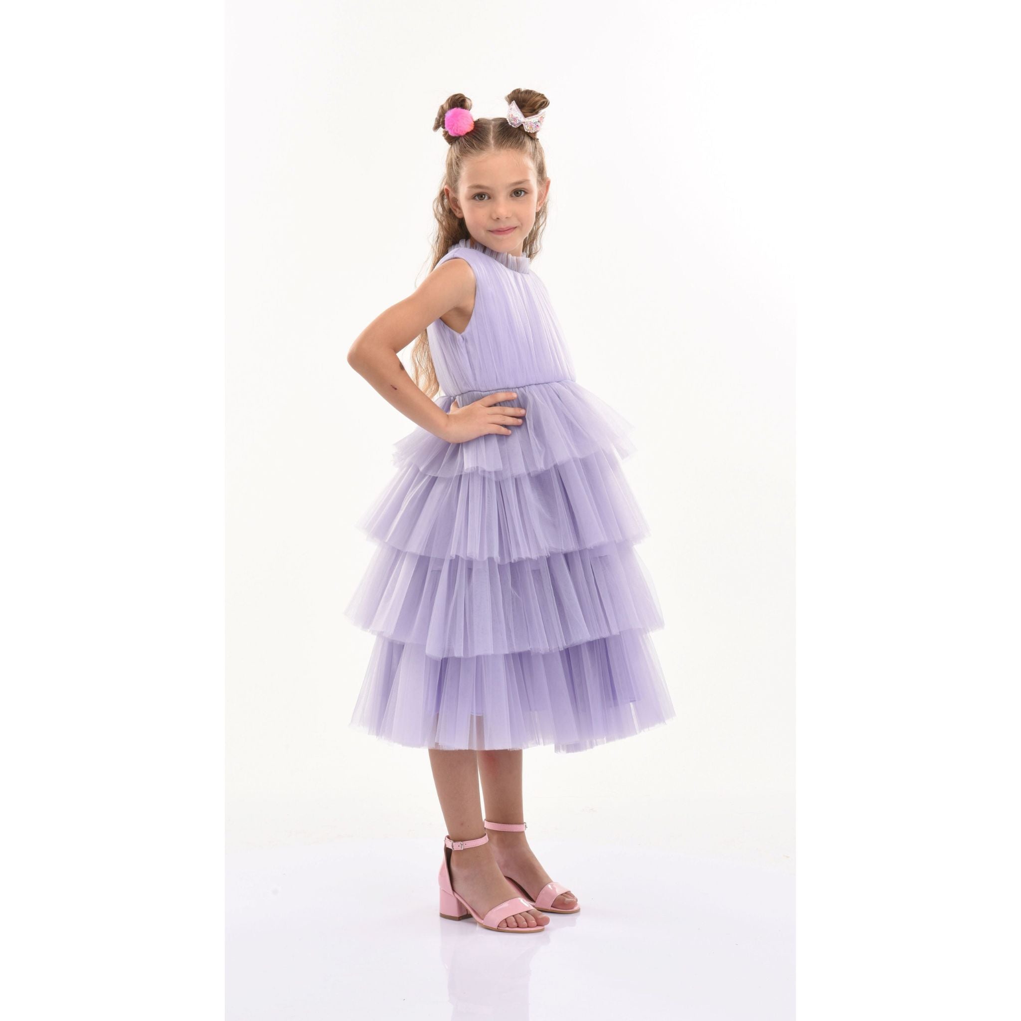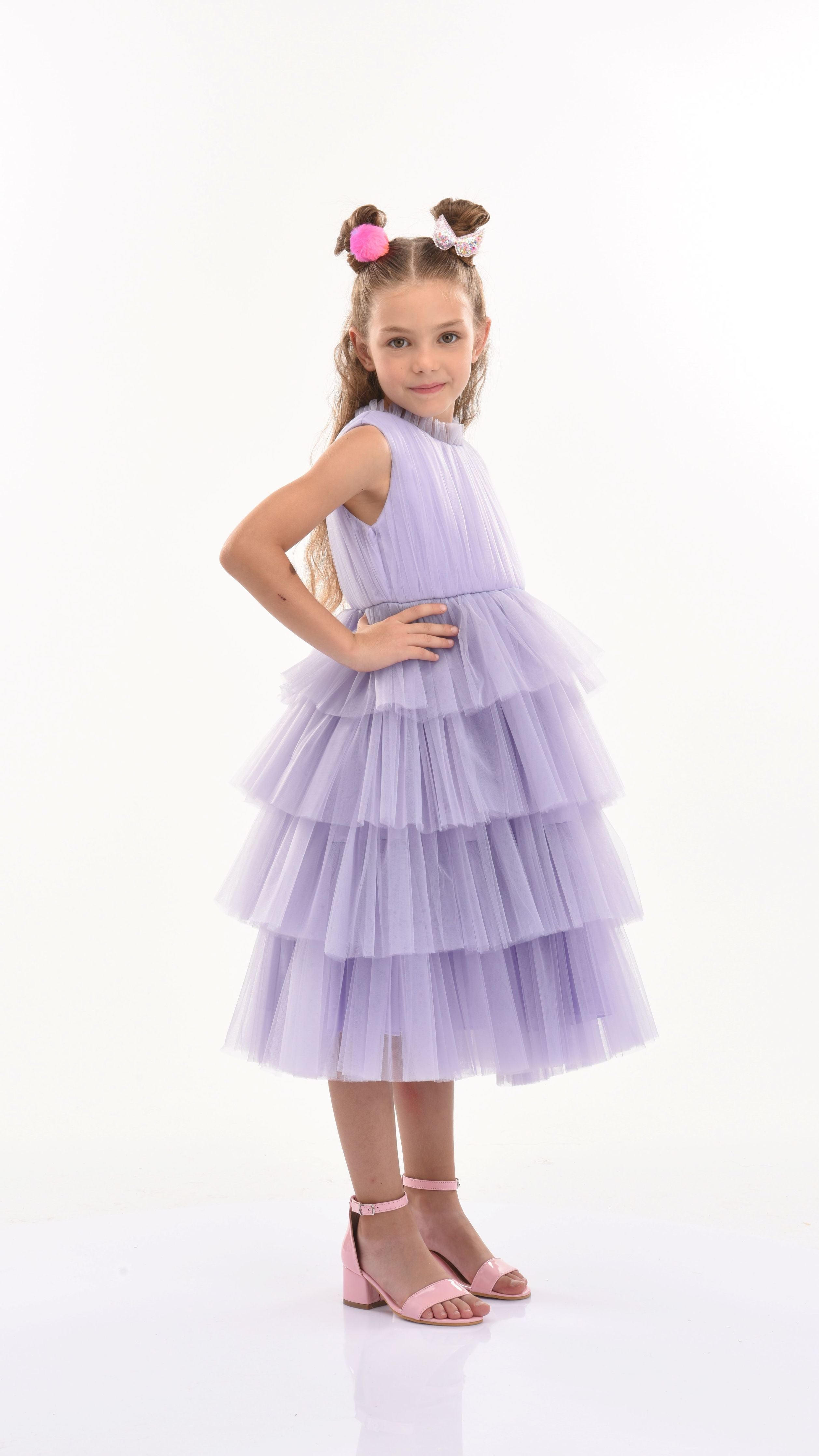 The Purple Farvue Sleeveless Tiered Tulle Dress for kid girls from Tulleen combines charm and elegance. This dress features a lightweight tulle sleeveless bodice, ensuring comfort and freedom of movement. Additionally, the layered tiers of tulle cascade from the hem down, creating a playful and enchanting silhouette.