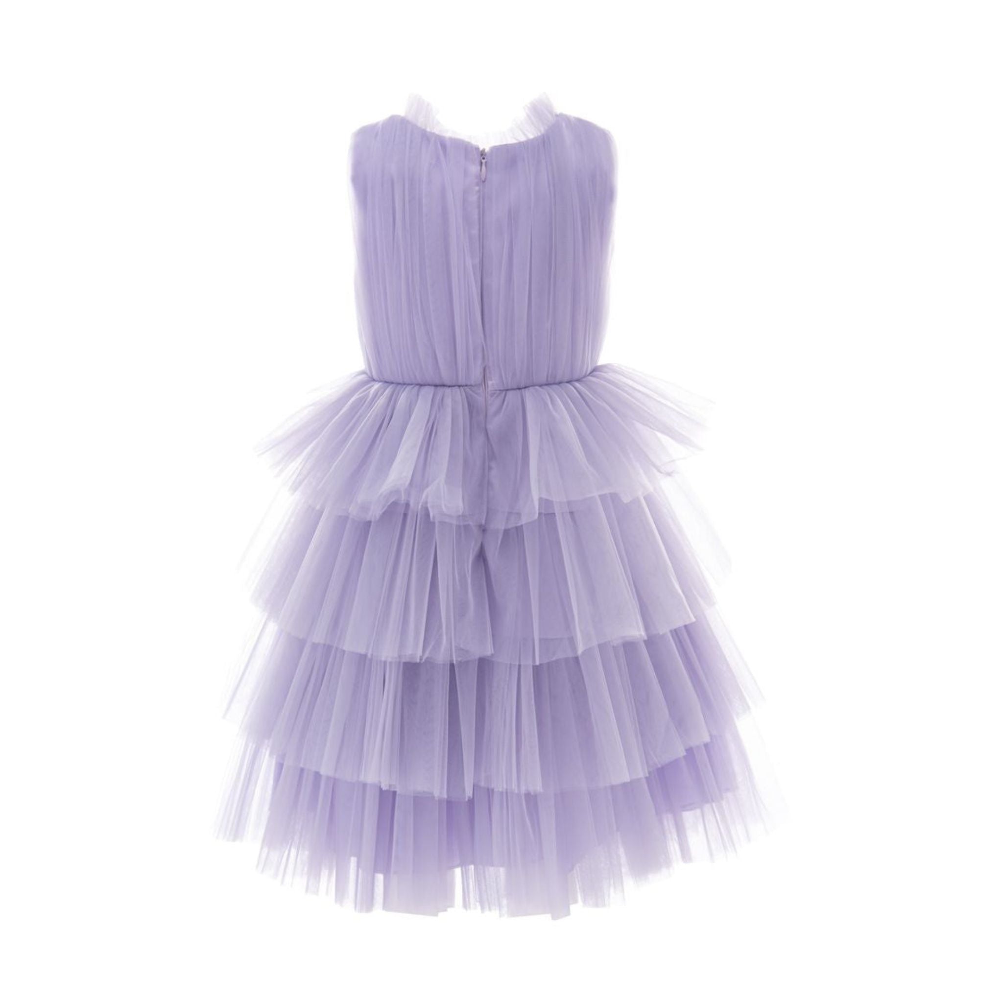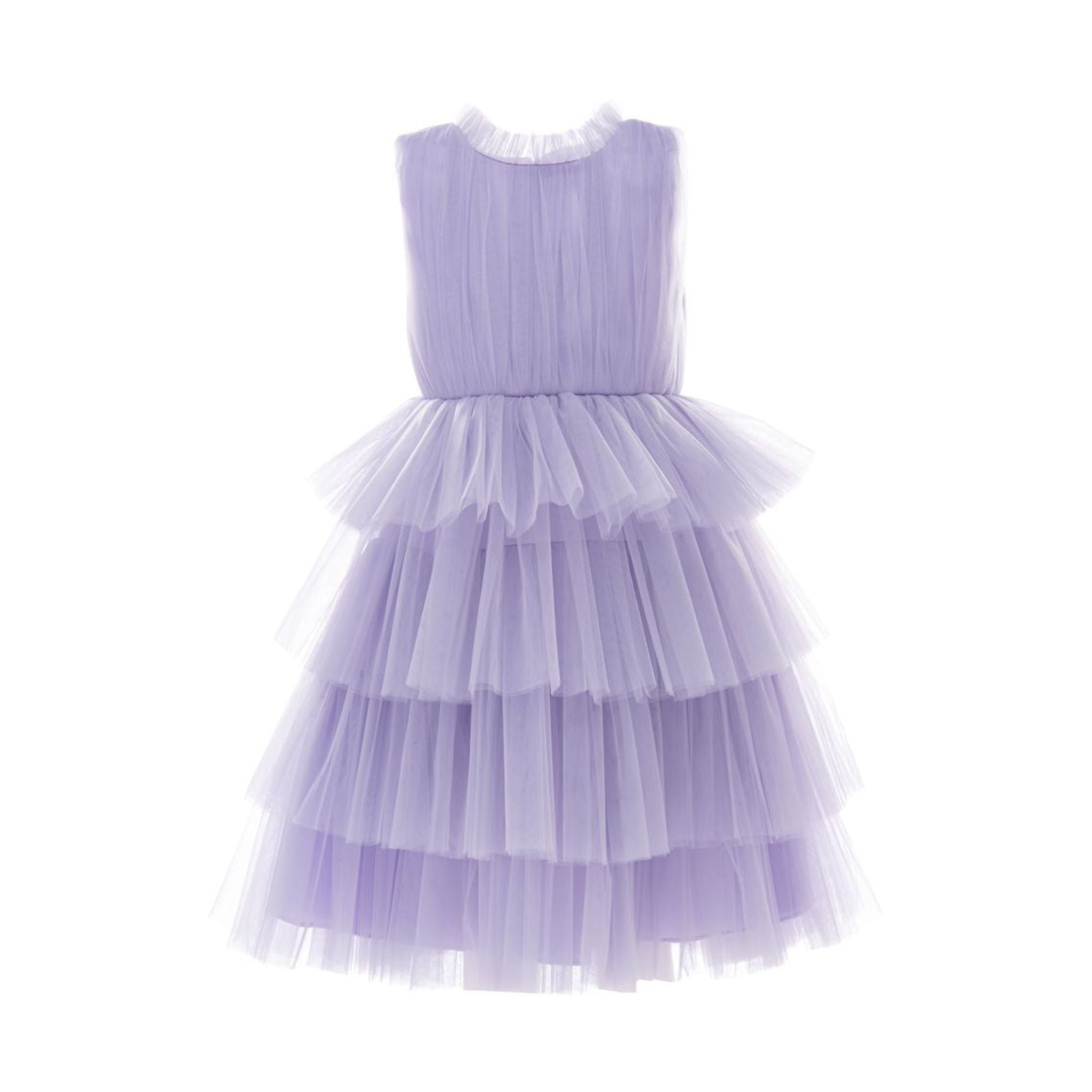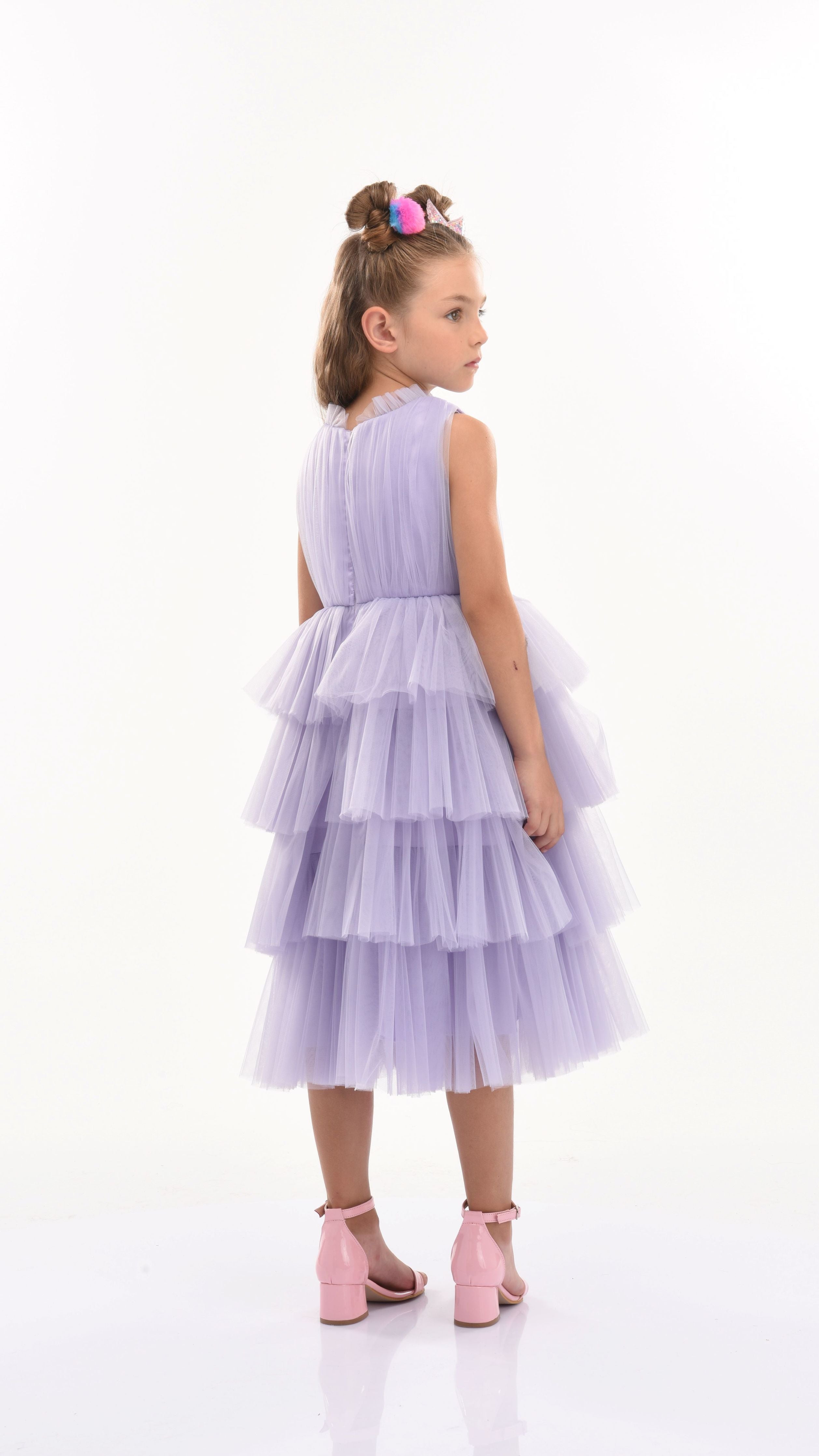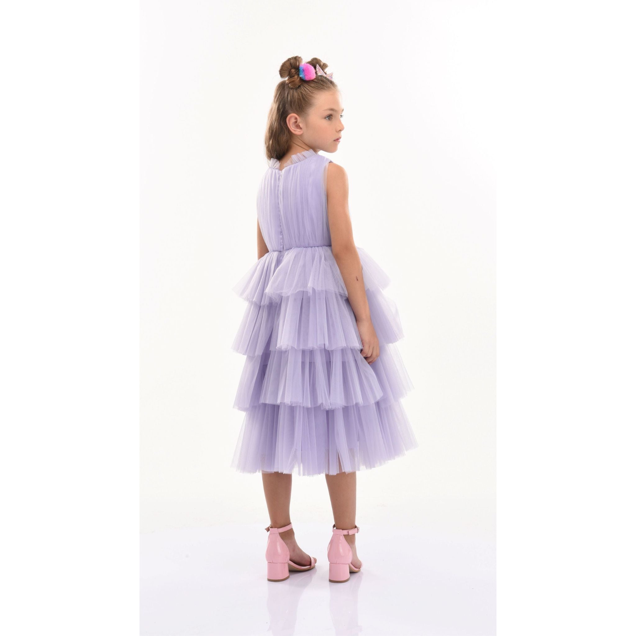 The Purple Farvue Sleeveless Tiered Tulle Dress for kid girls from Tulleen combines charm and elegance. This dress features a lightweight tulle sleeveless bodice, ensuring comfort and freedom of movement. Additionally, the layered tiers of tulle cascade from the hem down, creating a playful and enchanting silhouette.