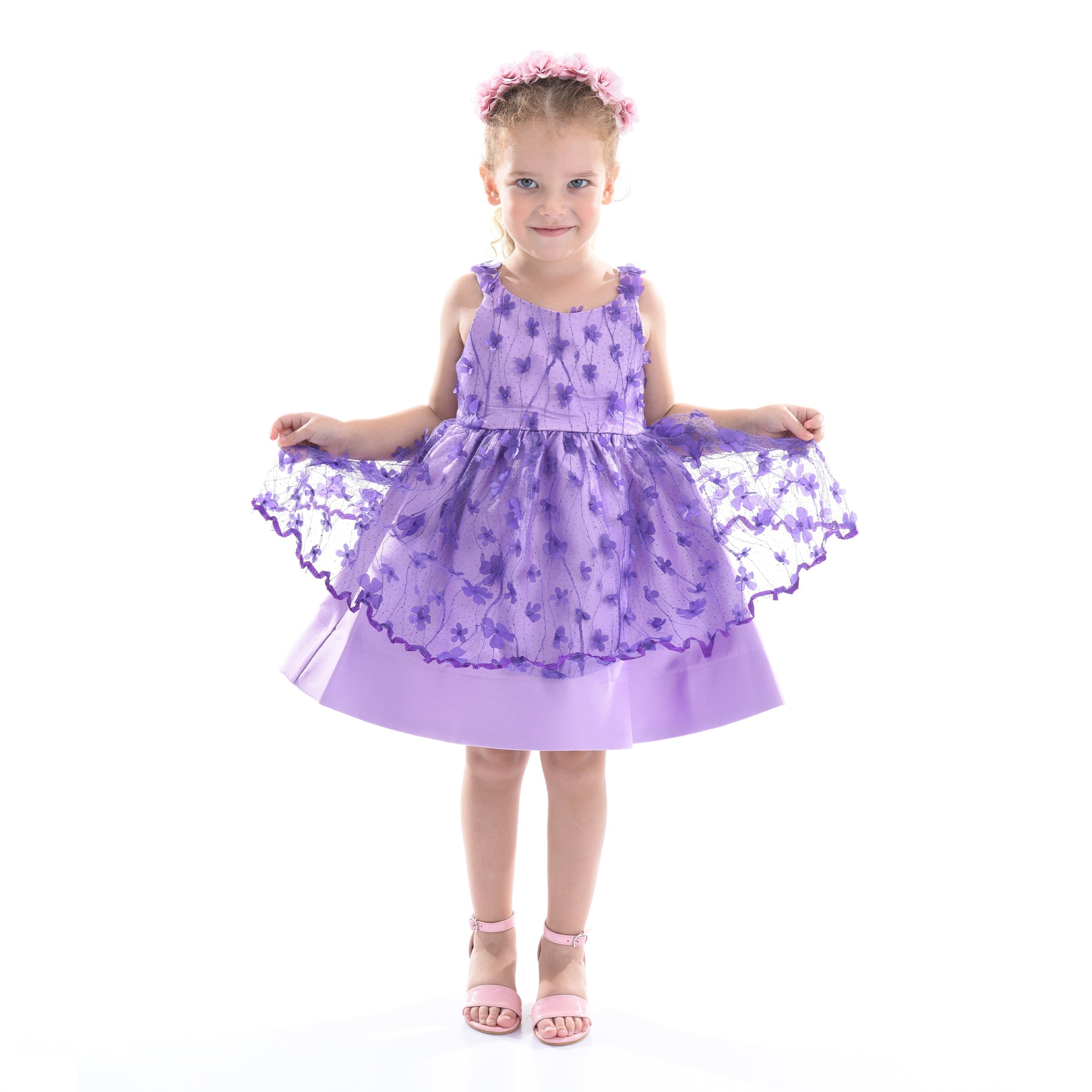 Made from 100% polyester with a 100% cotton lining, this dress combines durability with a soft and comfortable feel. The lightweight tulle skirt flows gracefully, adding an enchanting touch to the overall design. Perfect for birthdays, weddings, and other festive events, the Purple Ravine Floral Dress guarantees your child will look and feel extraordinary.