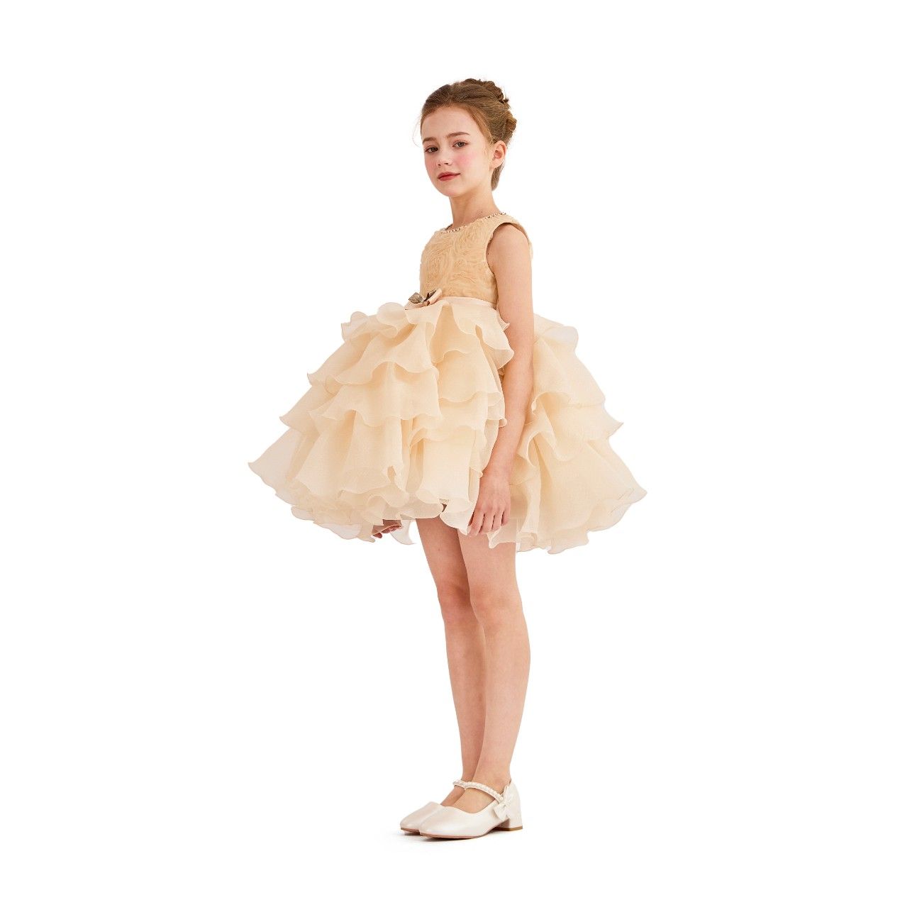 - Tiered ruffled skirt with voluminous princess-style flare