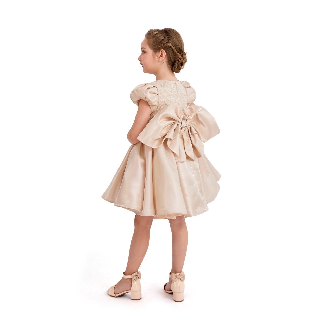 Champagne Altura Satin Bow Occasion Dress