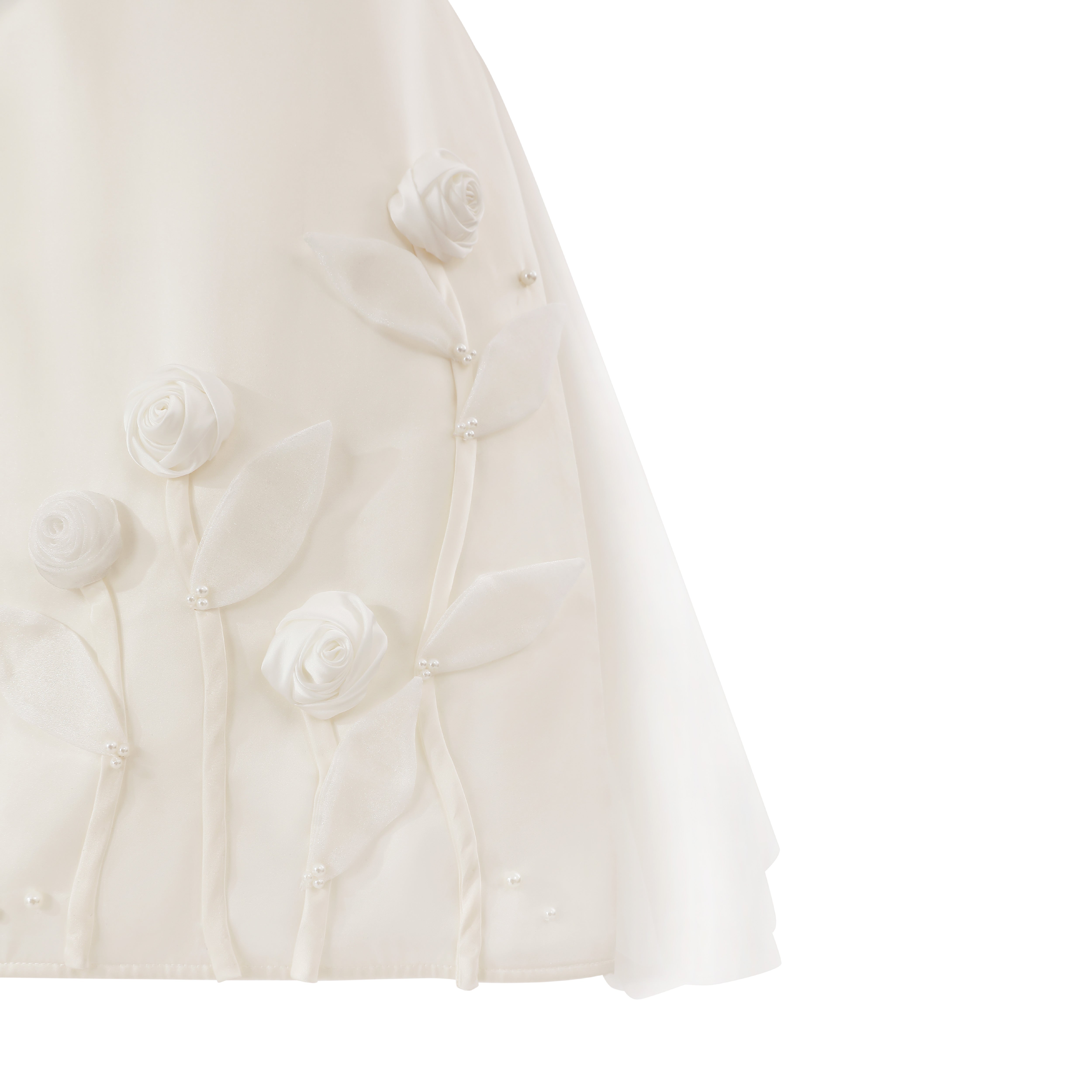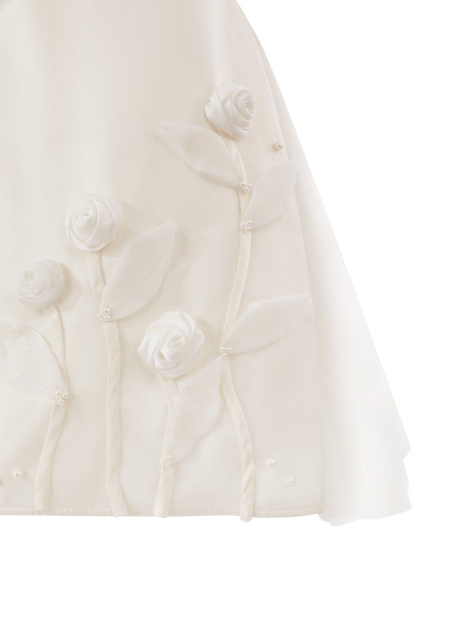 White Valmonta Satin Dress with Floral Accents