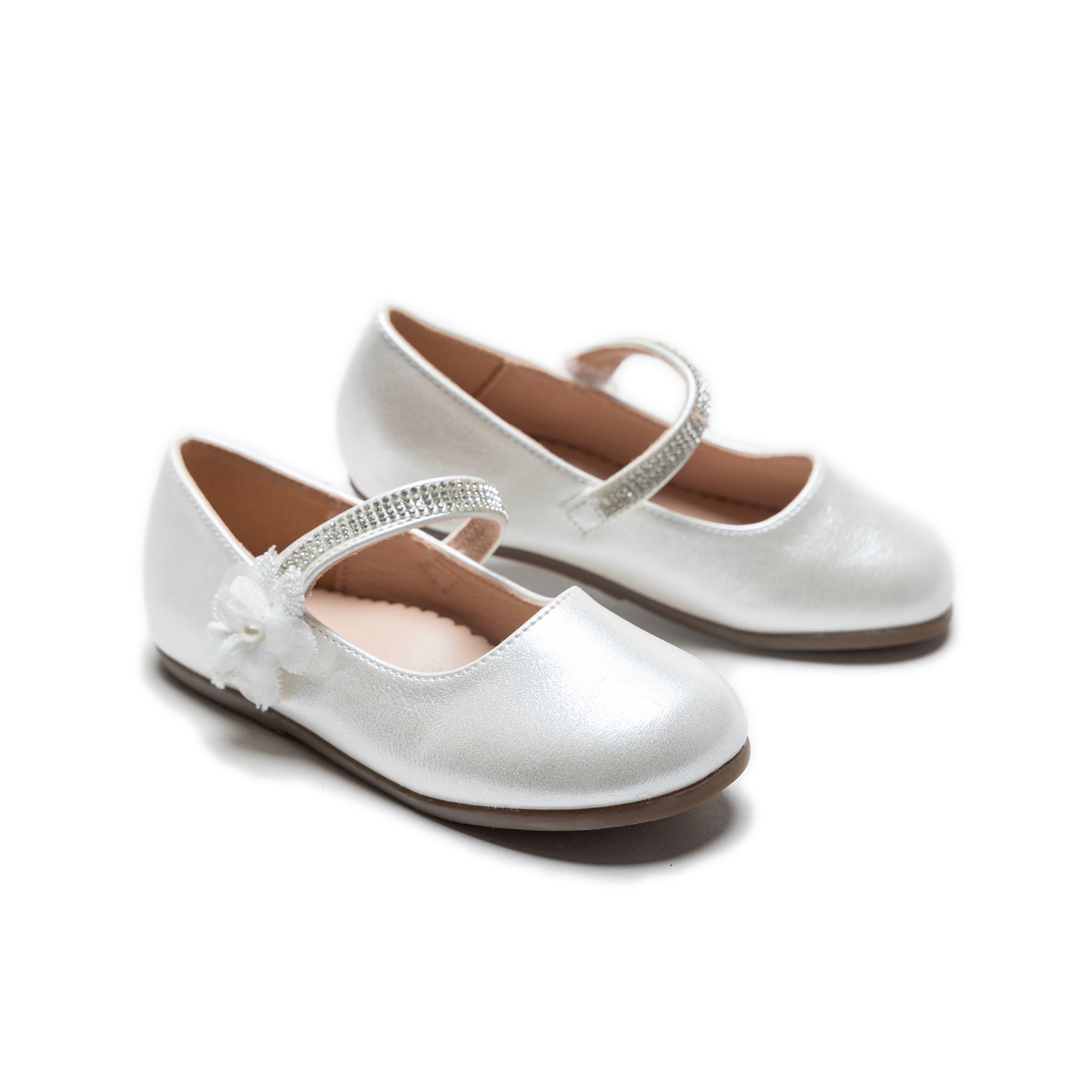 Delicate yet statement-making, the Cream Primrose Rhinestone Flats by Tulleen are an exquisite addition to any young girl’s collection.