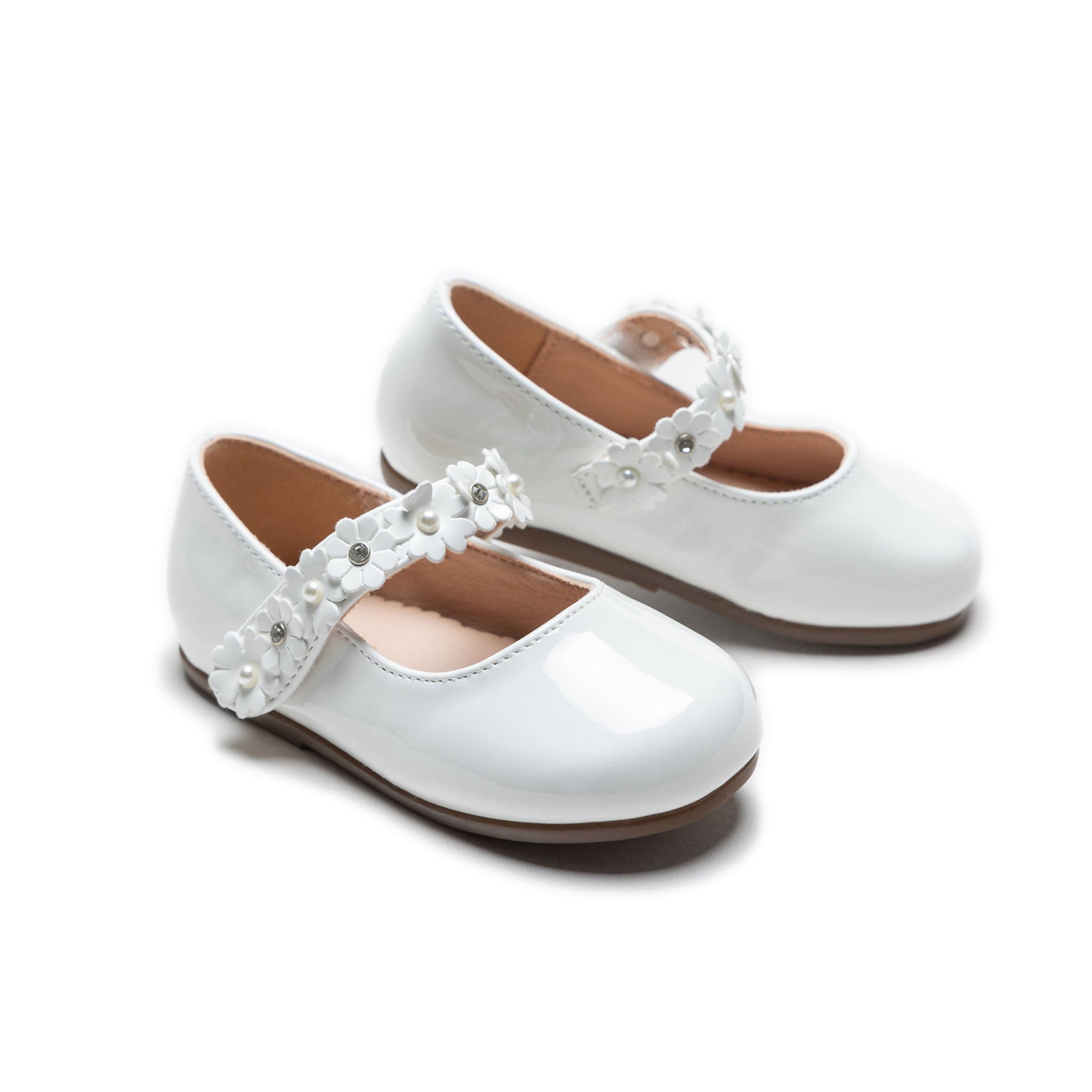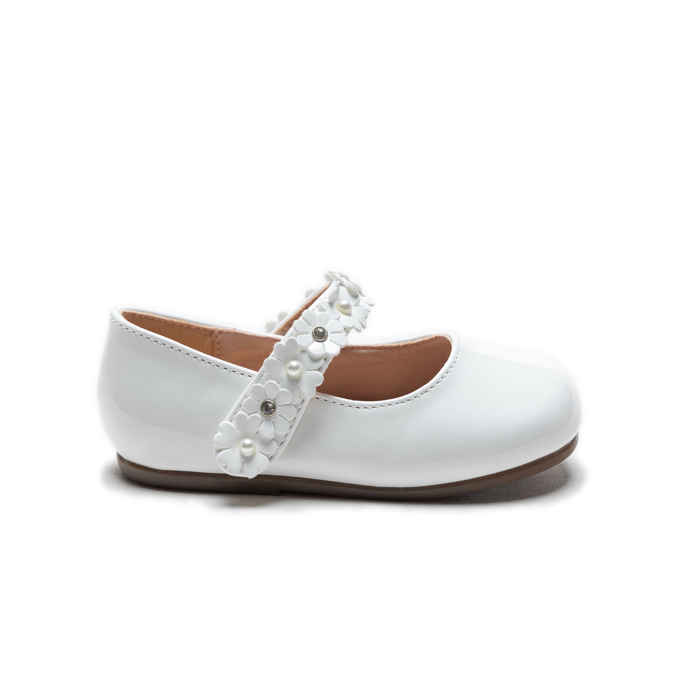 A timeless addition to any young girl’s wardrobe, the White Amelia Floral Band Flats by Tulleen blend luxury with playful charm.