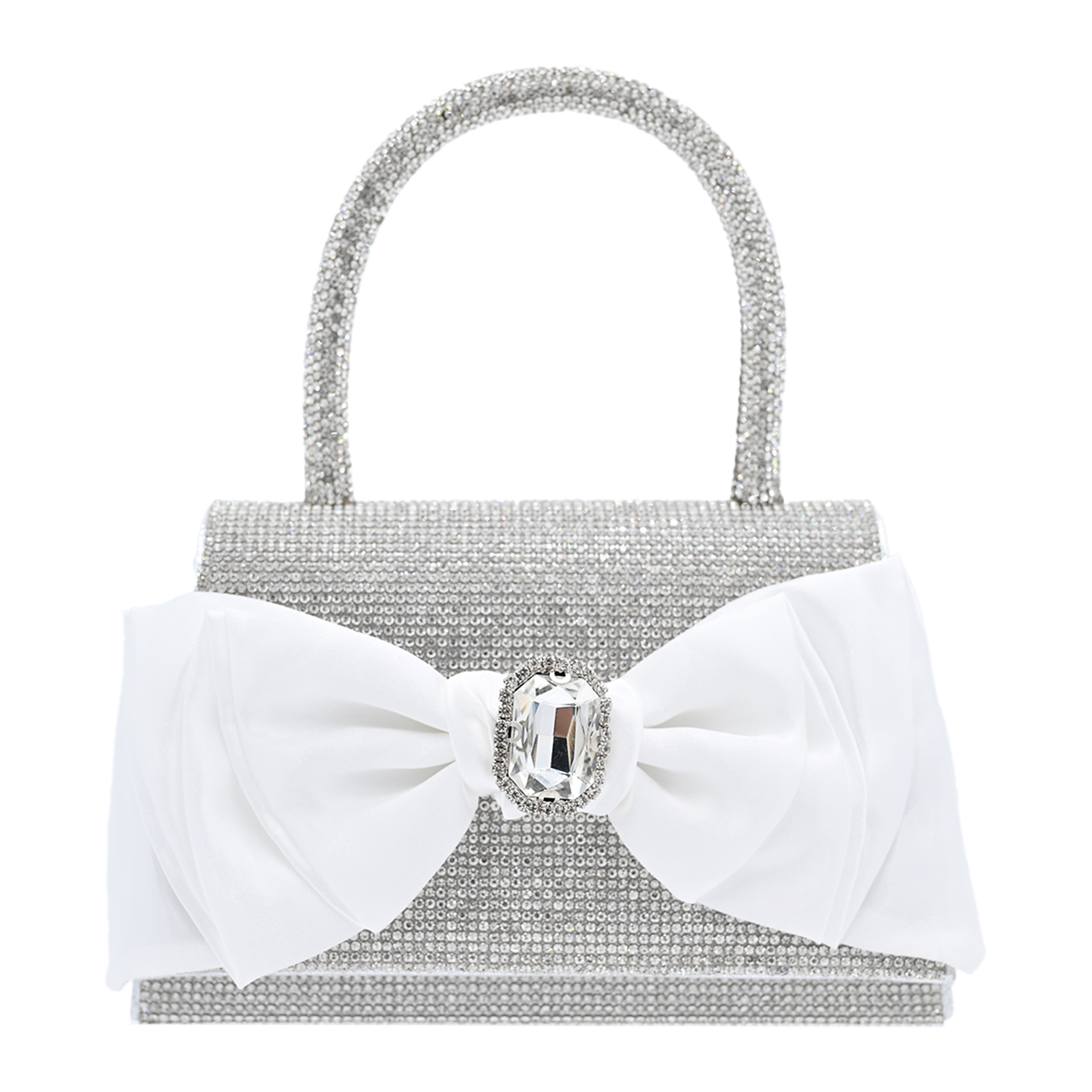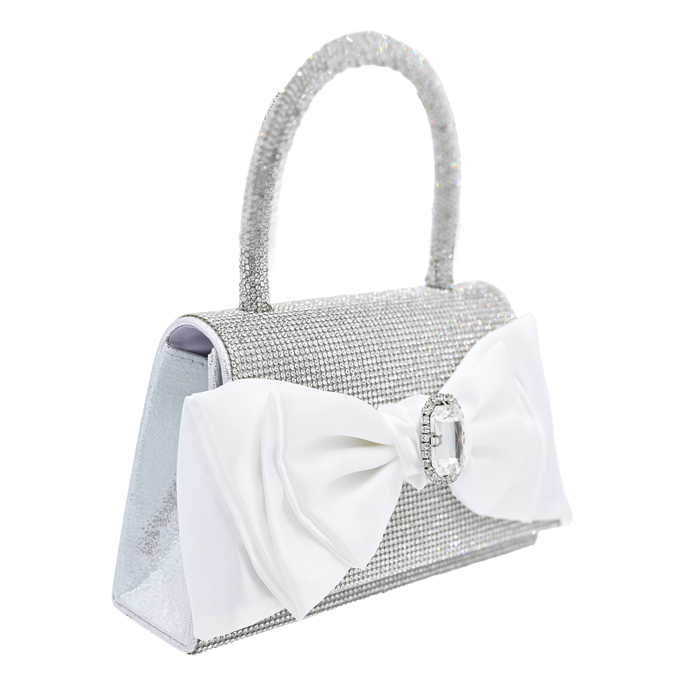 White Bow Accented Silver Rhinestone Handbag