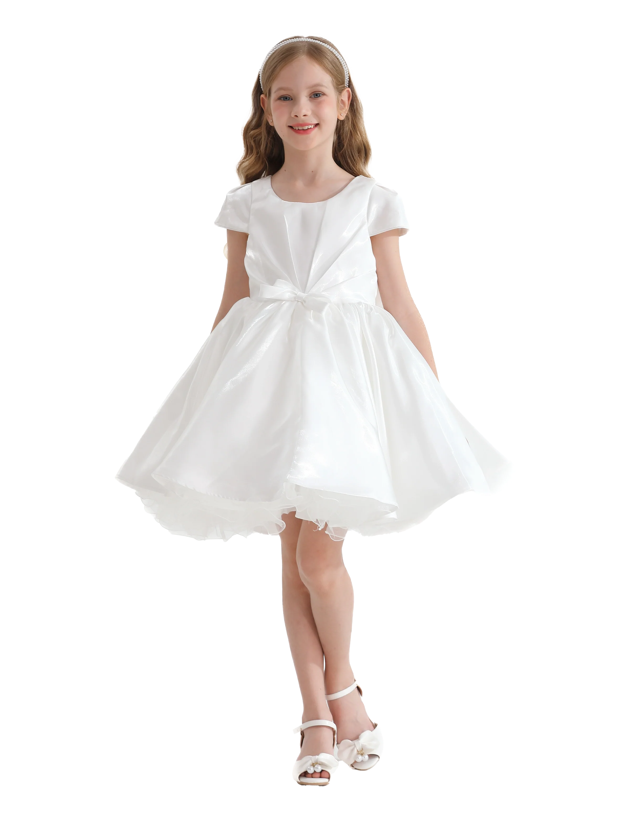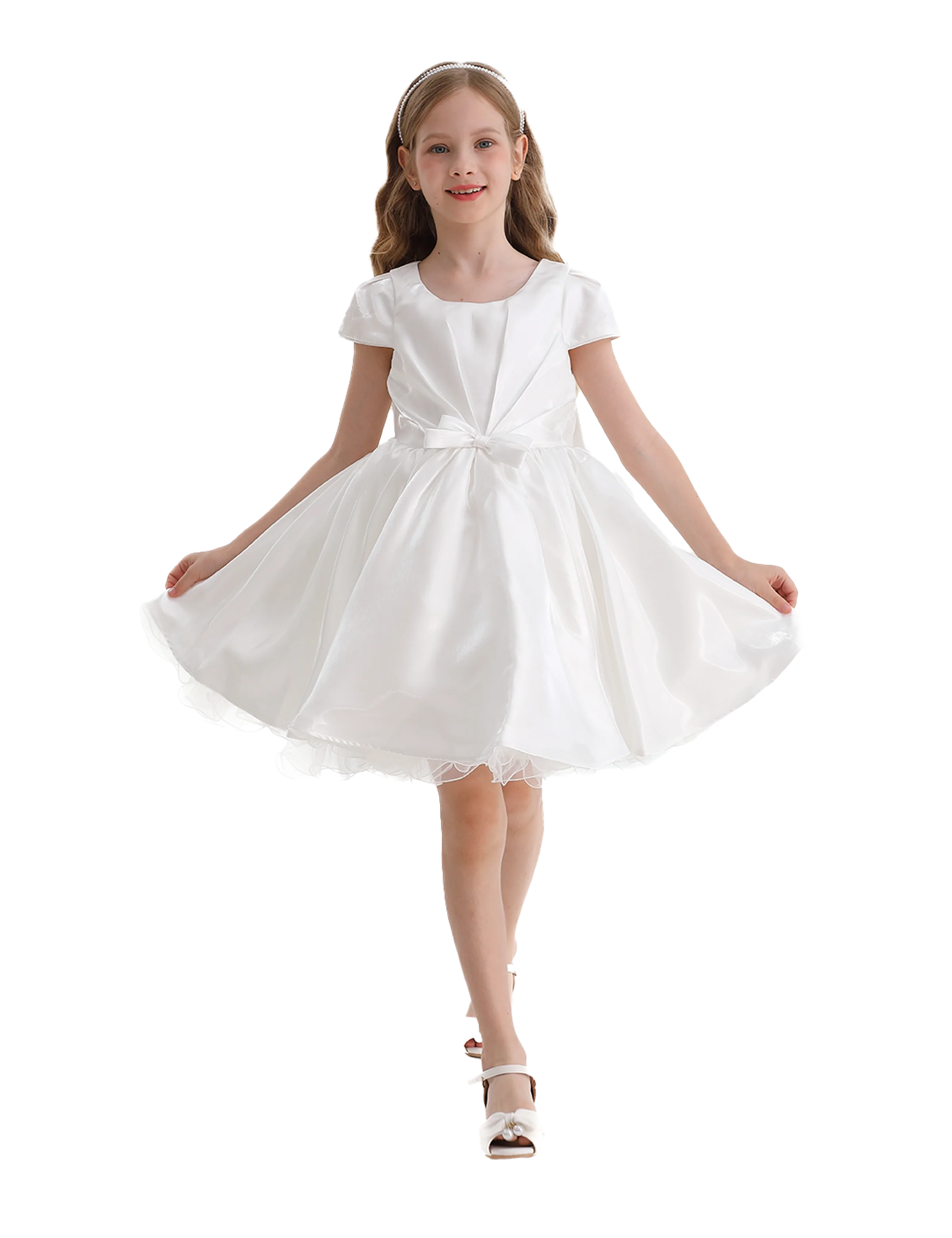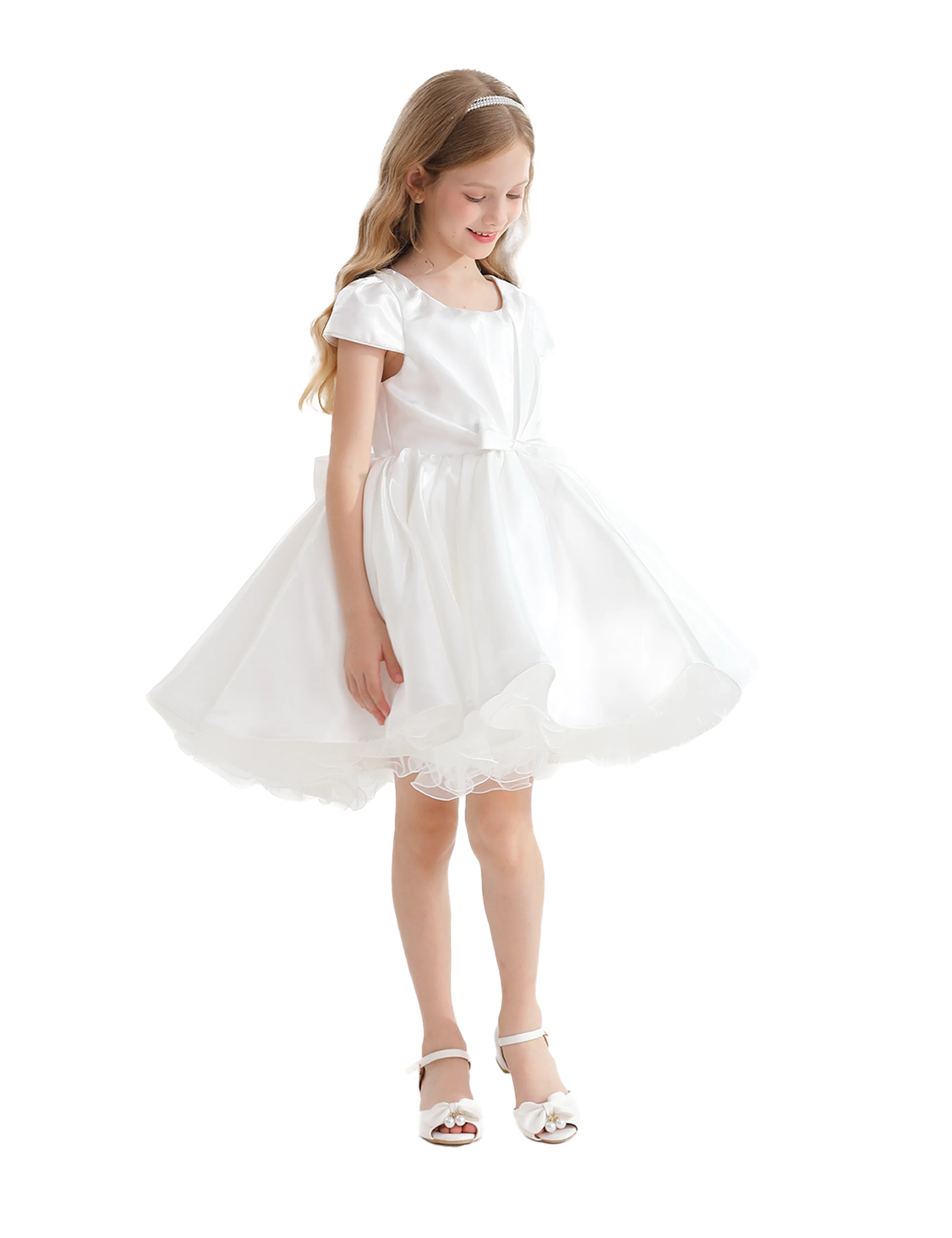 Introducing the White Bow Short Solera Dress by Tulleen, a graceful fusion of timeless elegance and youthful charm. Featuring a soft, lustrous white satin hue, this short dress radiates purity and sophistication, making it perfect for any occasion.