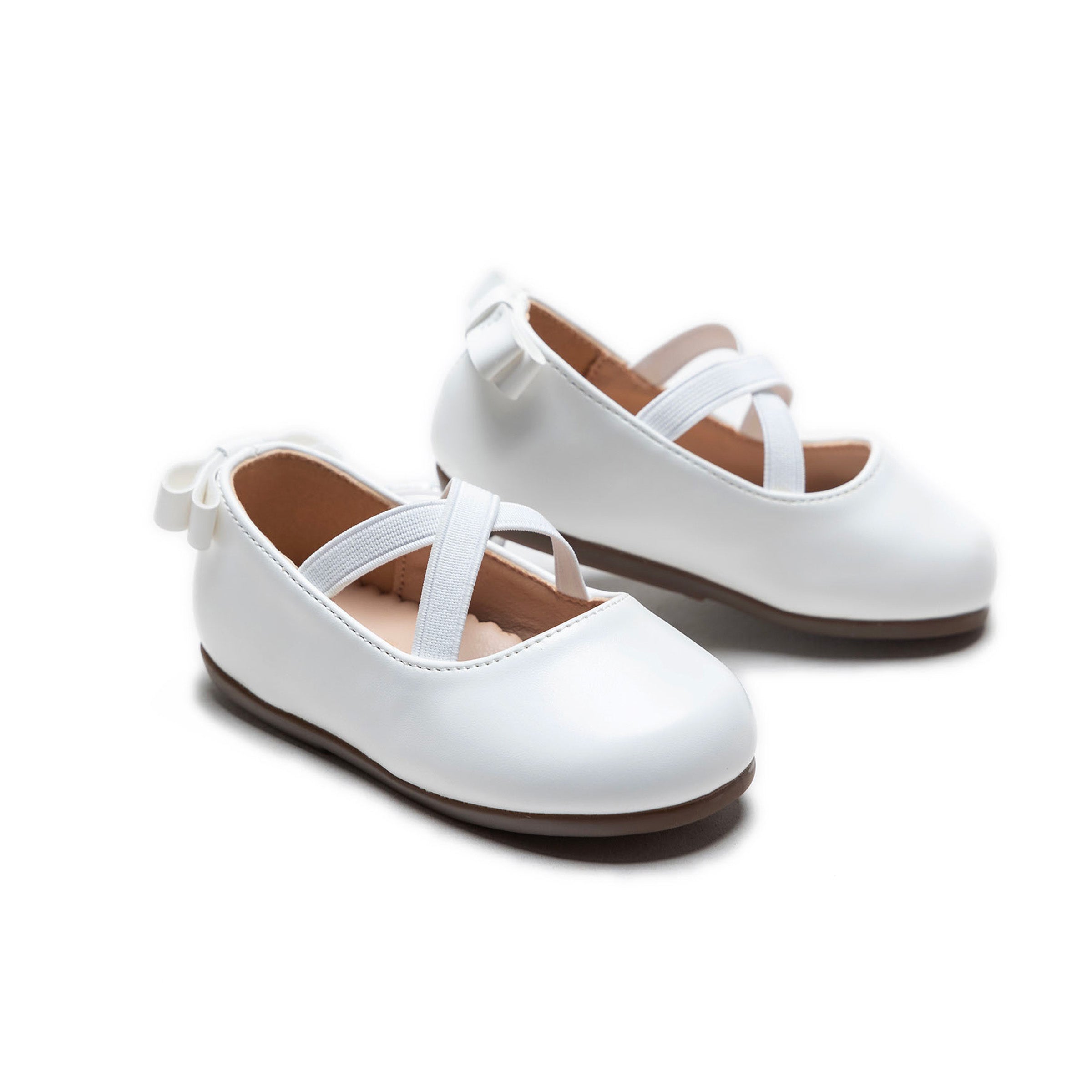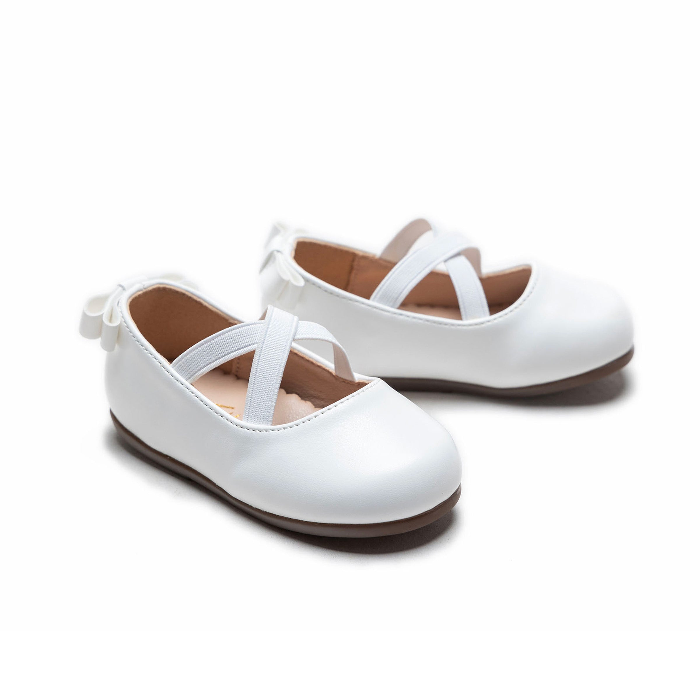 The White Charmed Cross Banded Ribbon Flats by Tulleen are a must-have addition to any little girl’s wardrobe. Their timeless appeal and versatile design make them an effortlessly stylish choice, ensuring she steps out with confidence and grace.