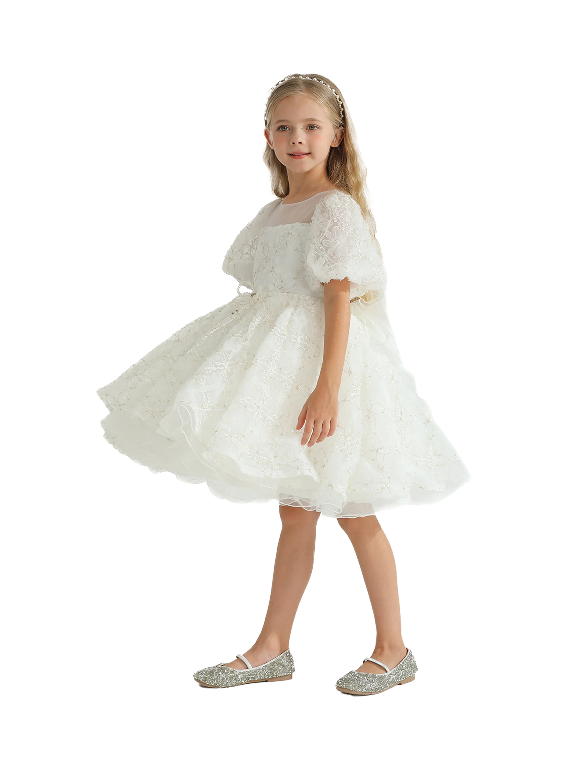 The White Laced Tulle Flower Wynfair Dress by Tulleen is a masterpiece of delicate details and graceful design, offering the perfect blend of youthful charm and classic allure.