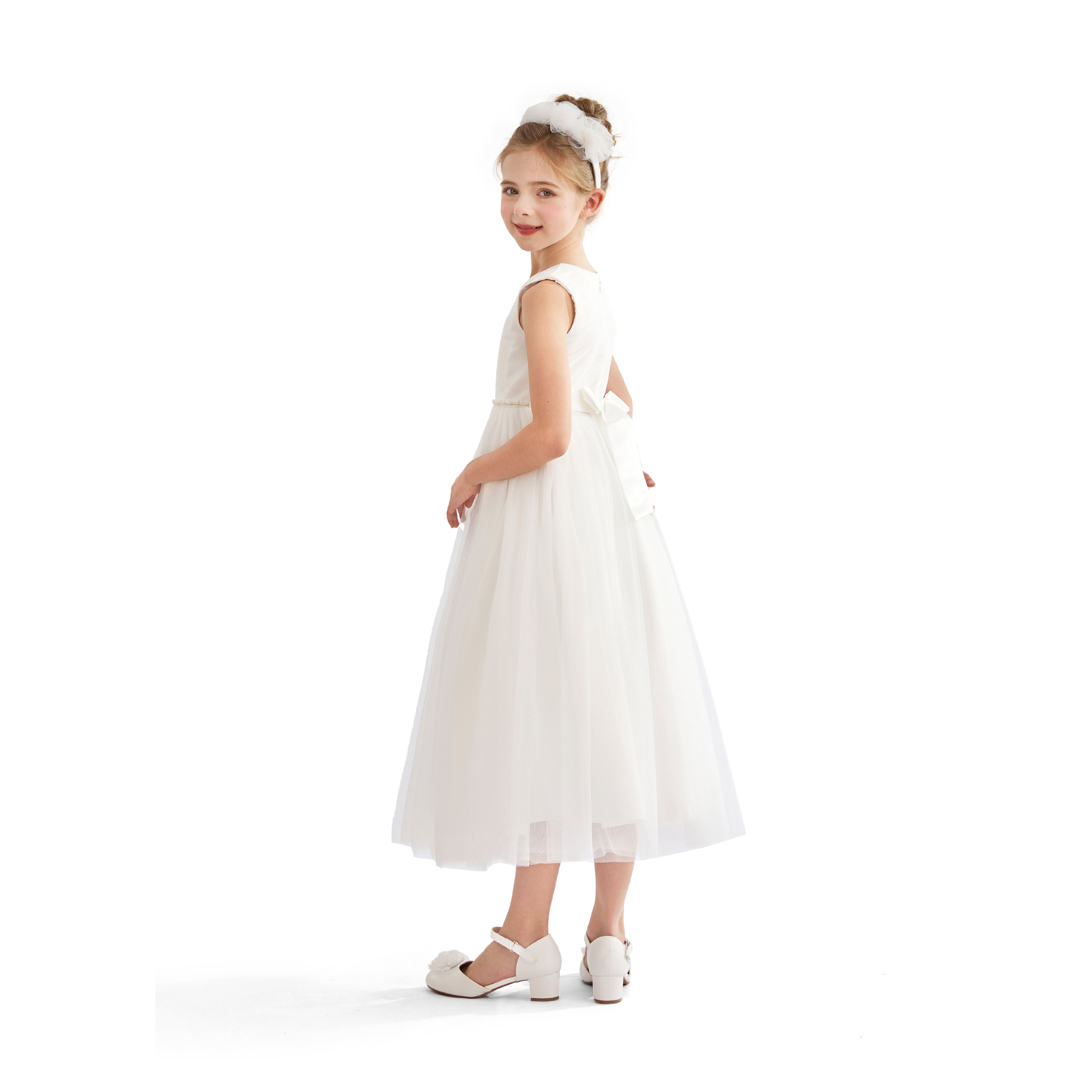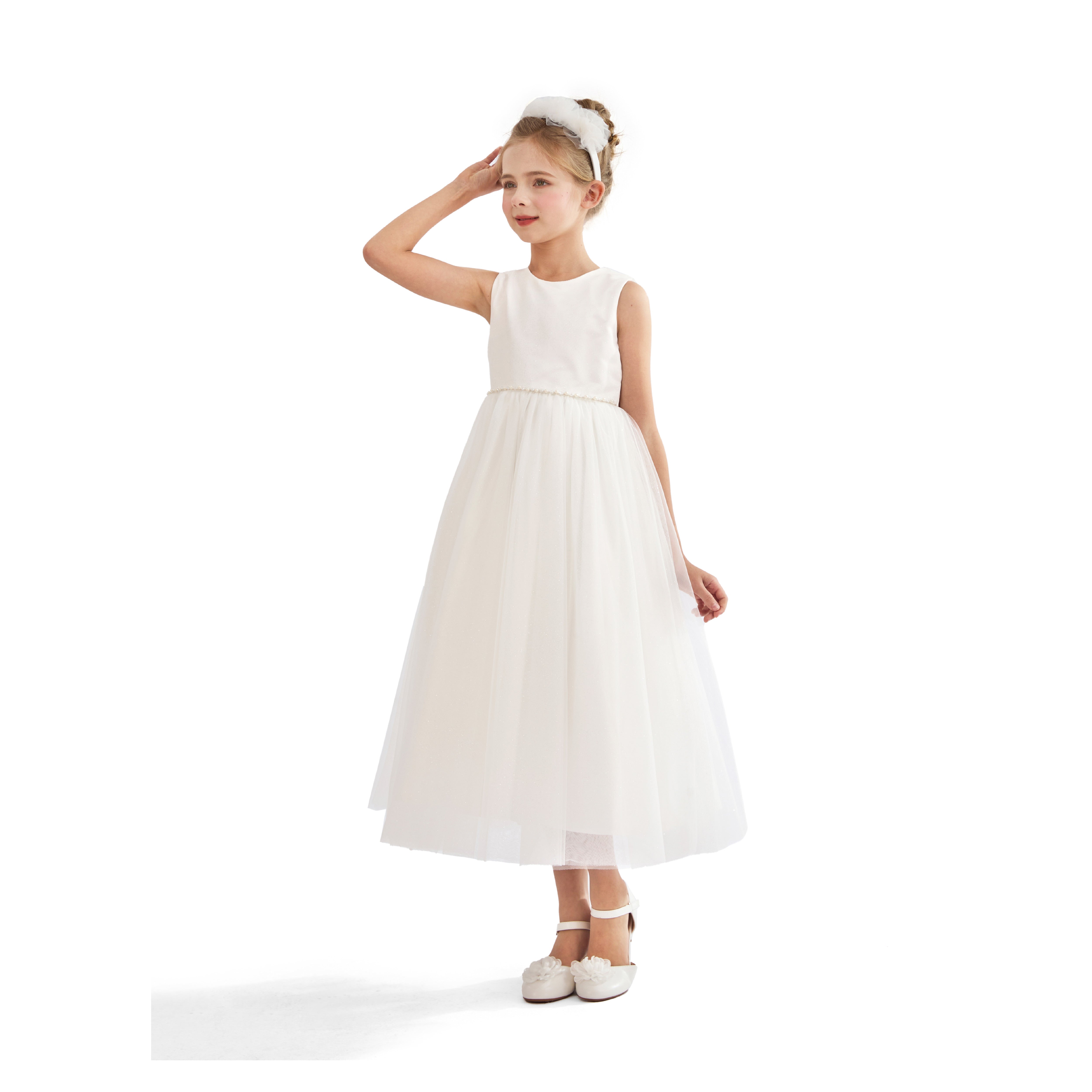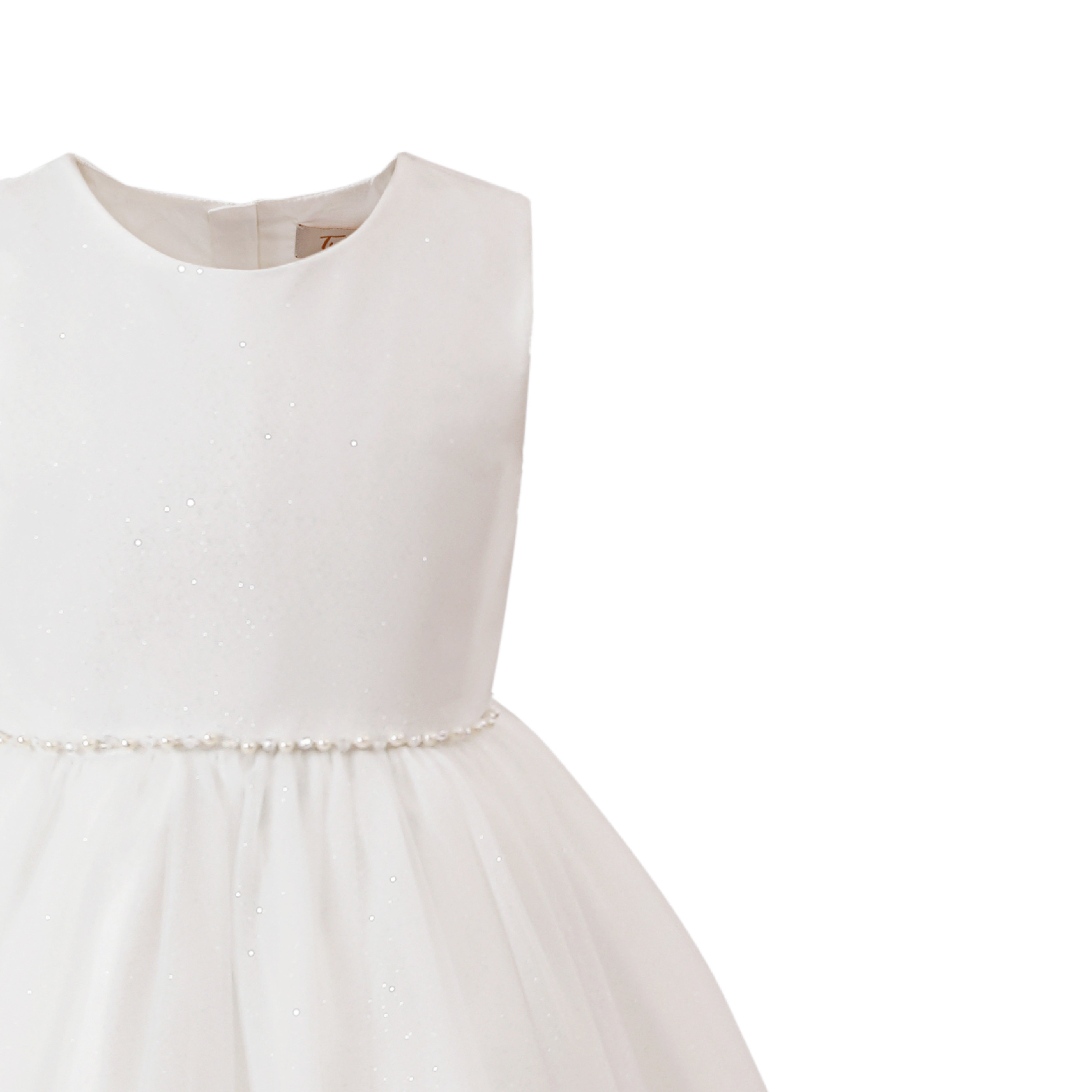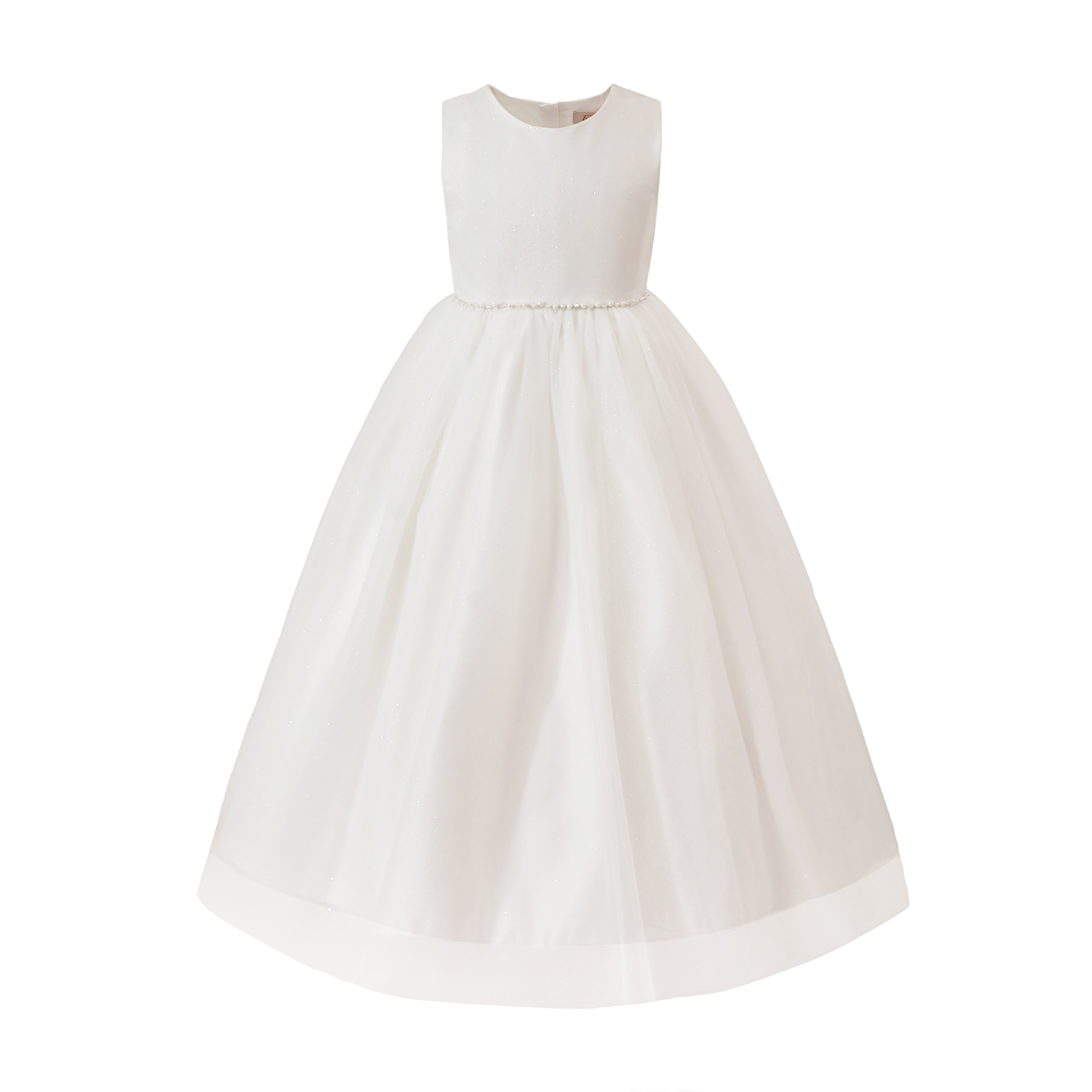 A refined ceremonial dress designed with simplicity and elegance, perfect for weddings, communions, or formal celebrations. Its flowing silhouette and lightweight fabric create a graceful finish.