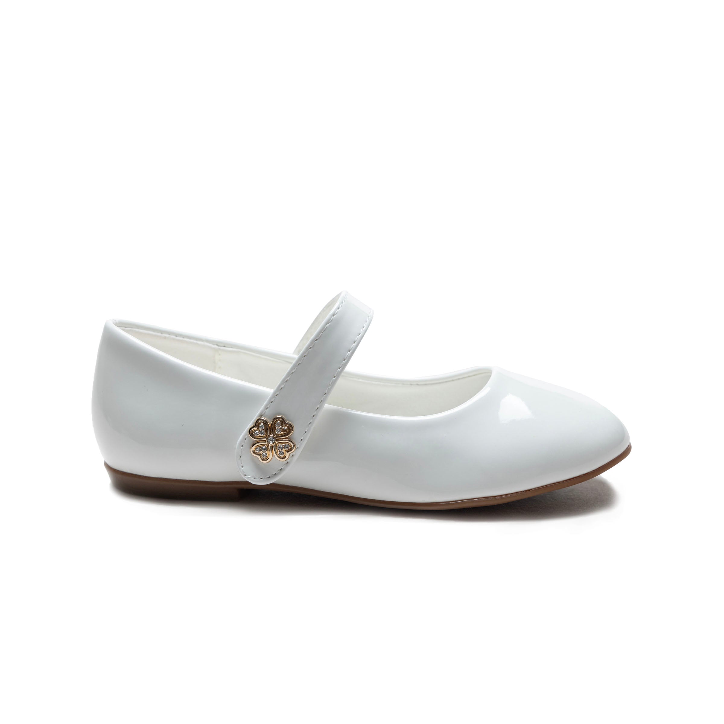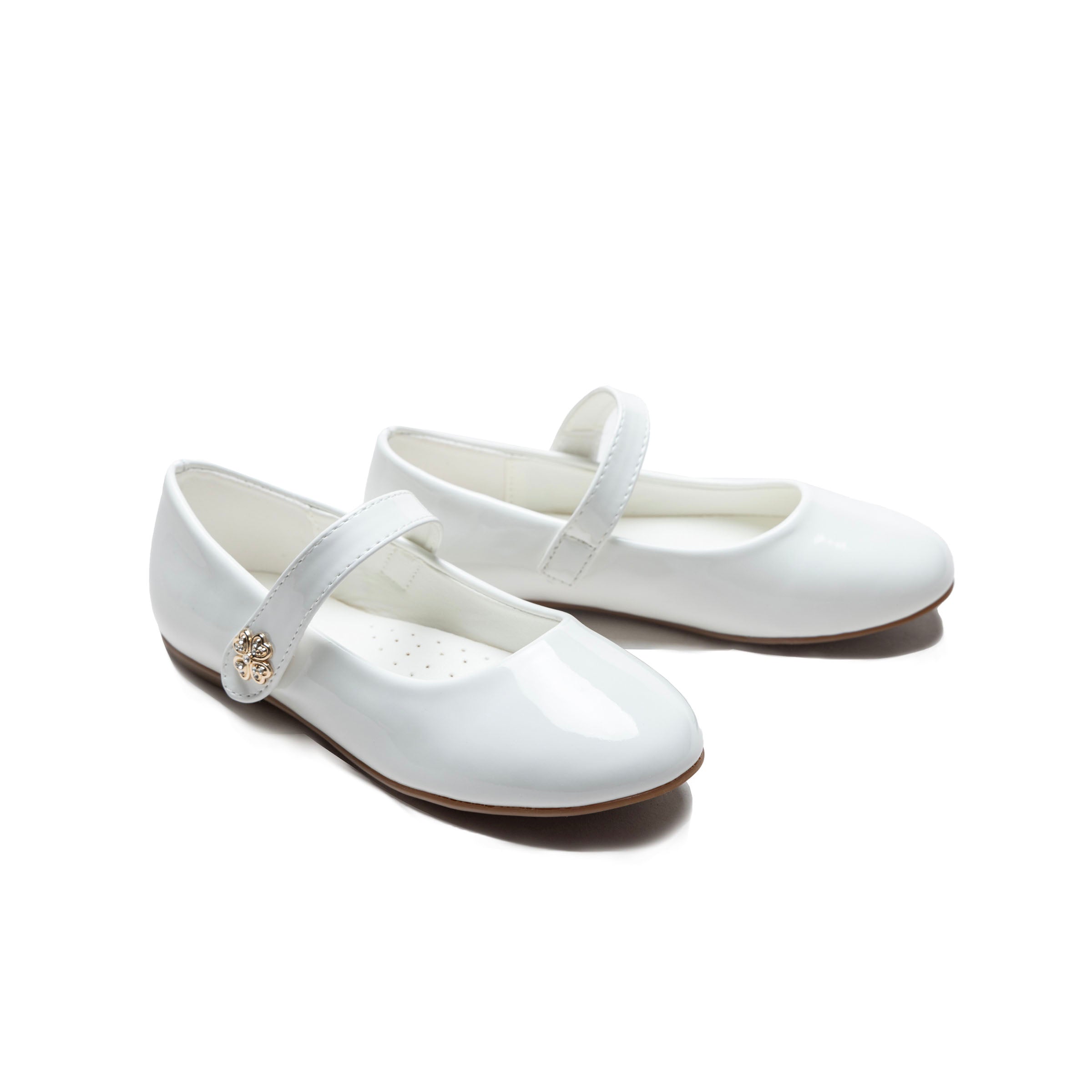 Bright and charming, the White Maleia Clover Charm Flats combine a crisp white finish with a delicate clover-shaped charm for a sweet, distinctive look. Perfect for special occasions or polished everyday wear, these flats add a subtle touch of whimsy.