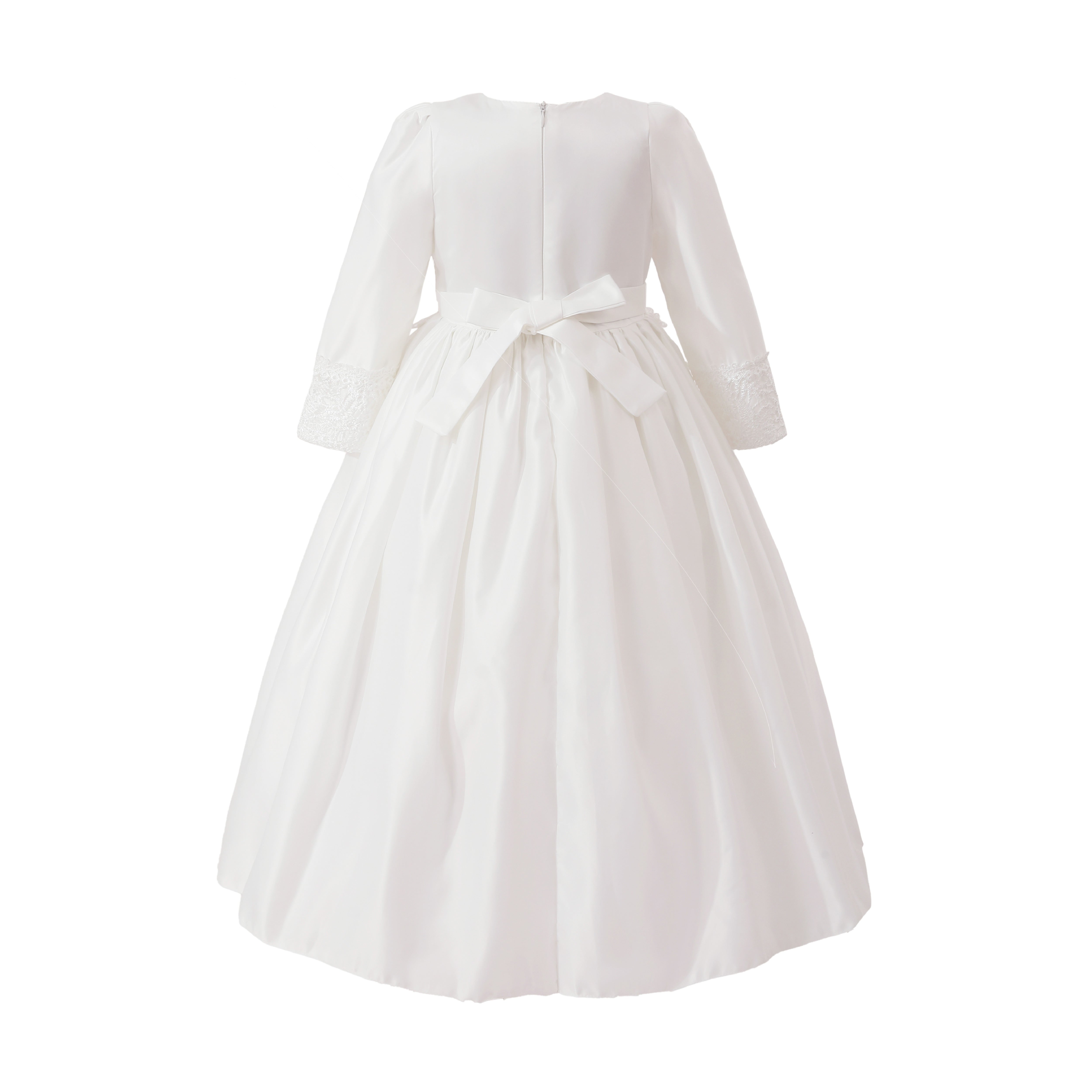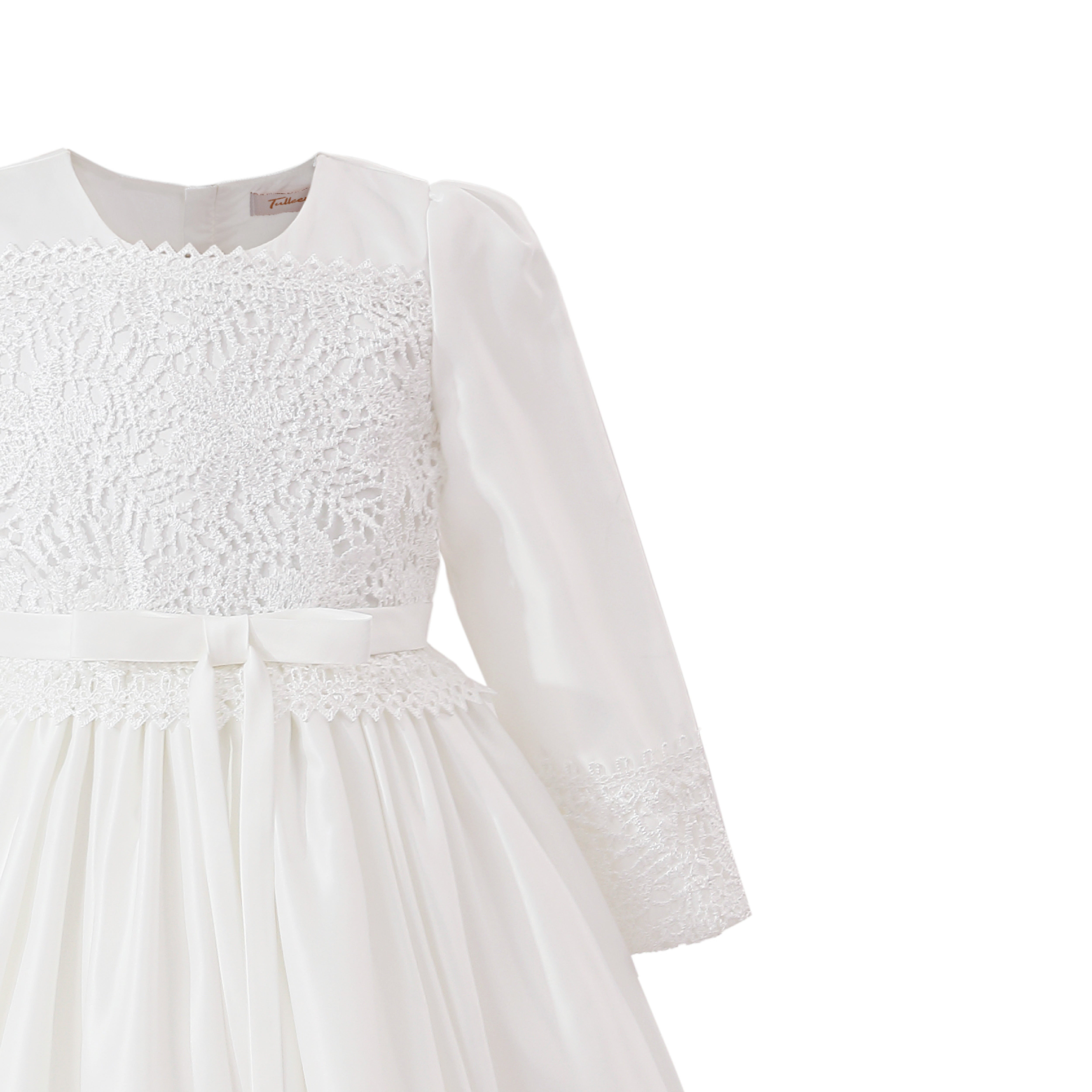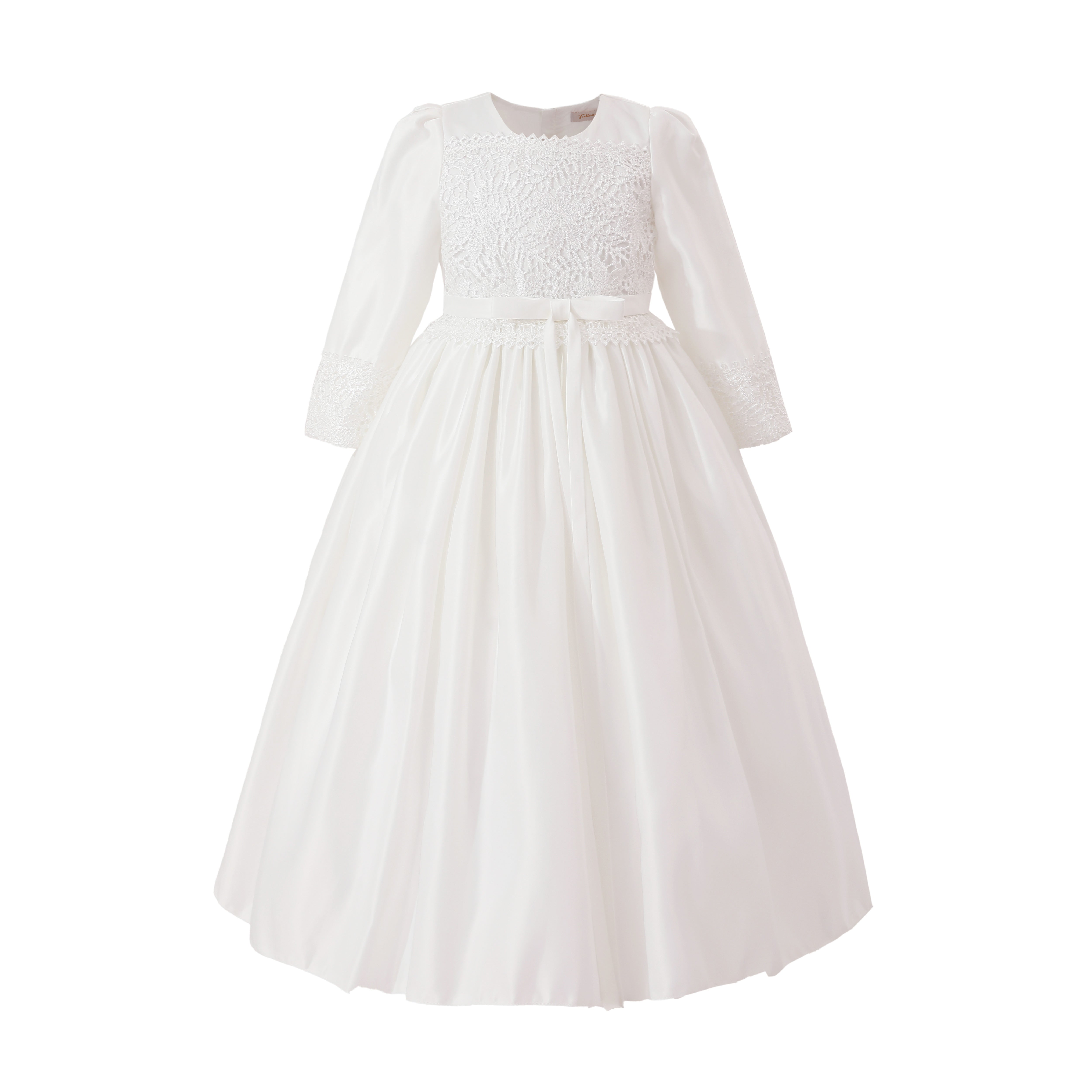 - Long sleeves with lace accents and a ribbon waist for delicate charm