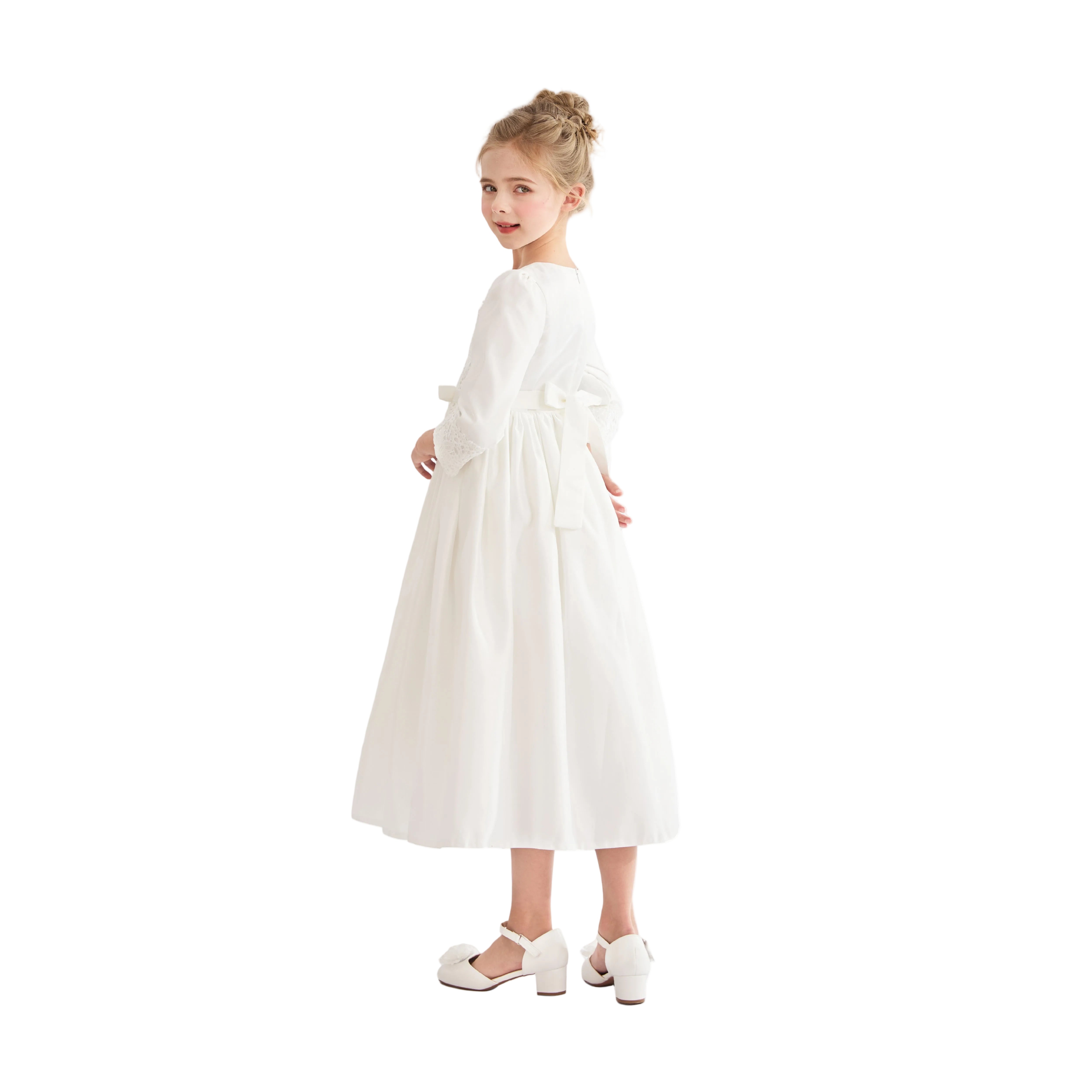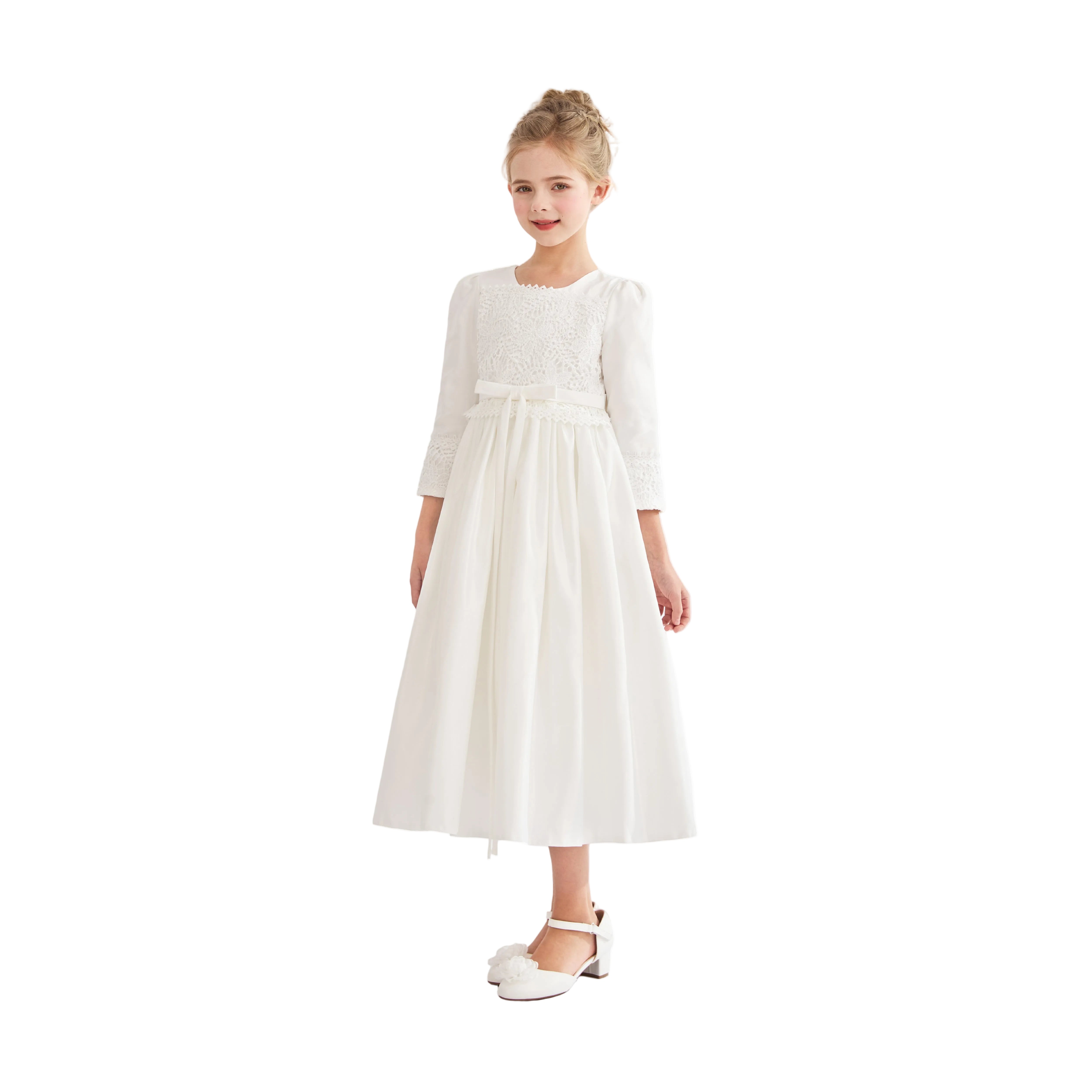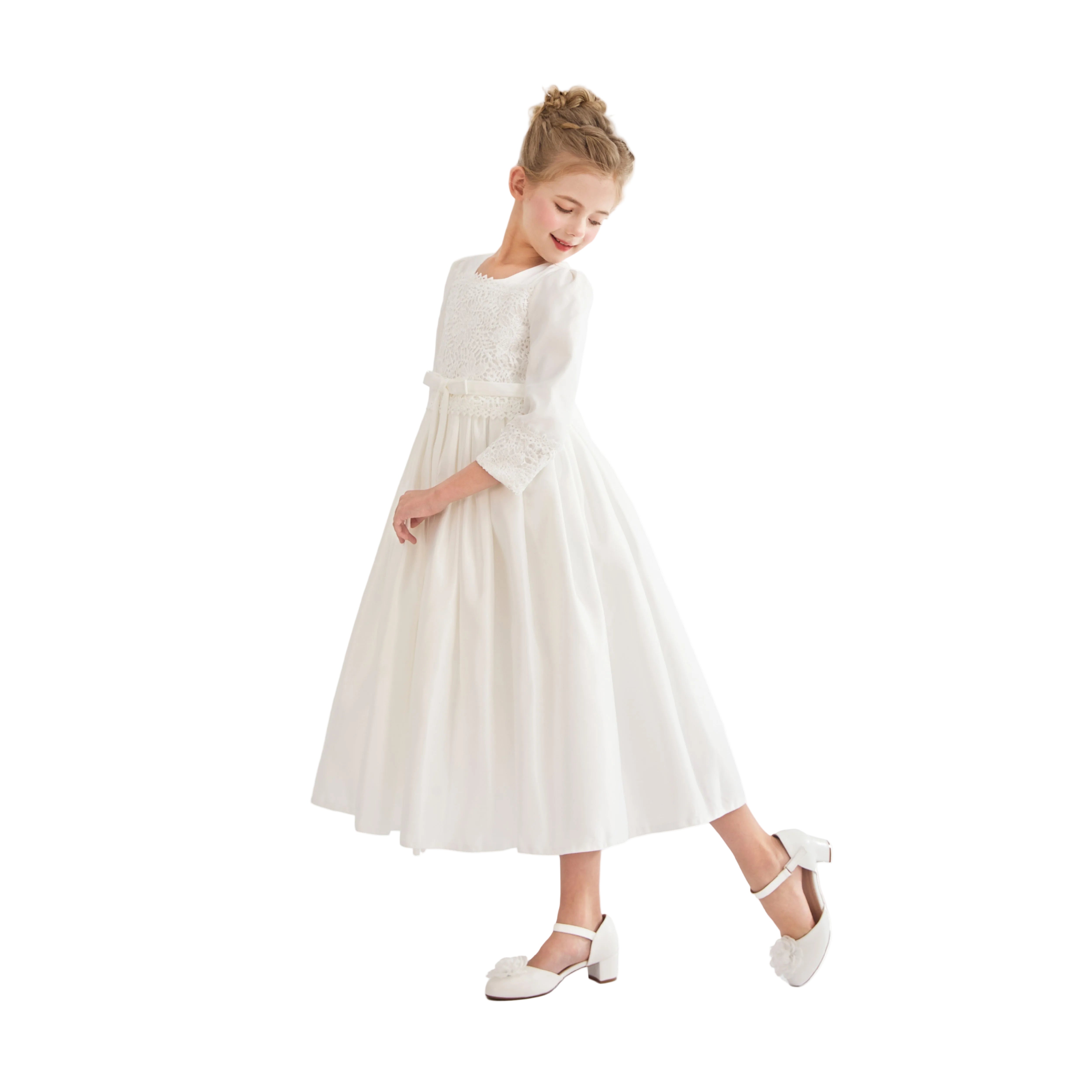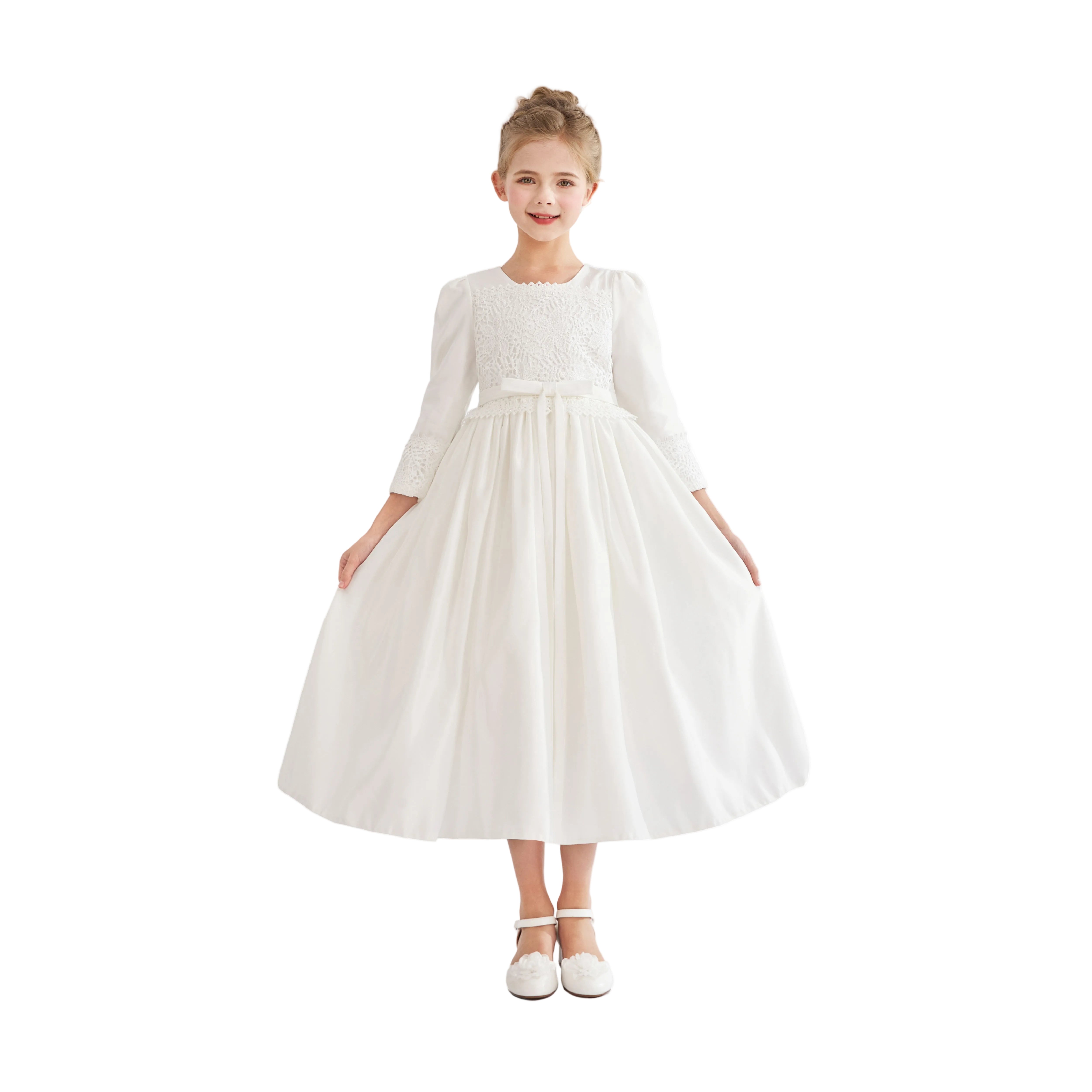 - Long sleeves with lace accents and a ribbon waist for delicate charm