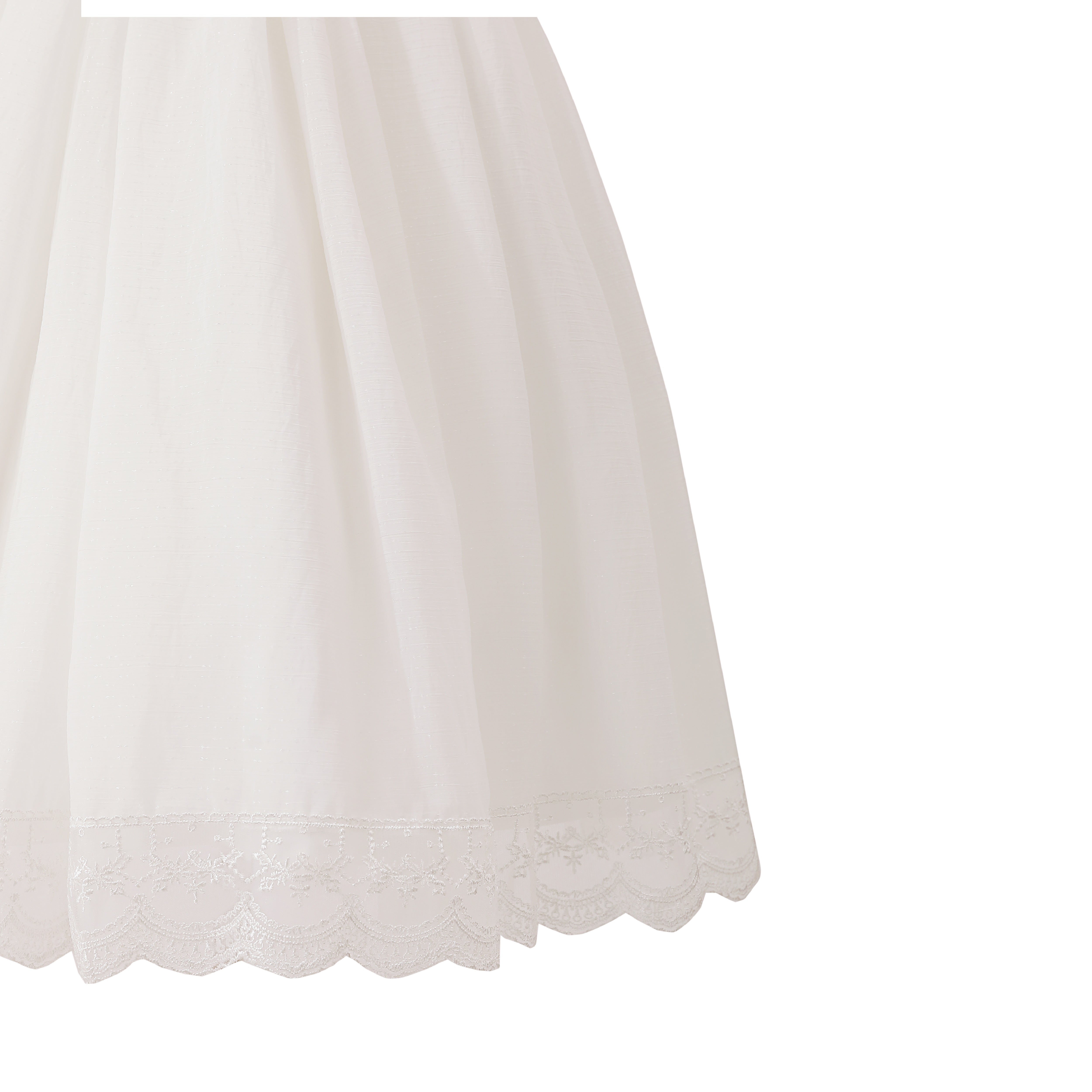 - Full-length voluminous skirt with lace-trim hem for a classic finish