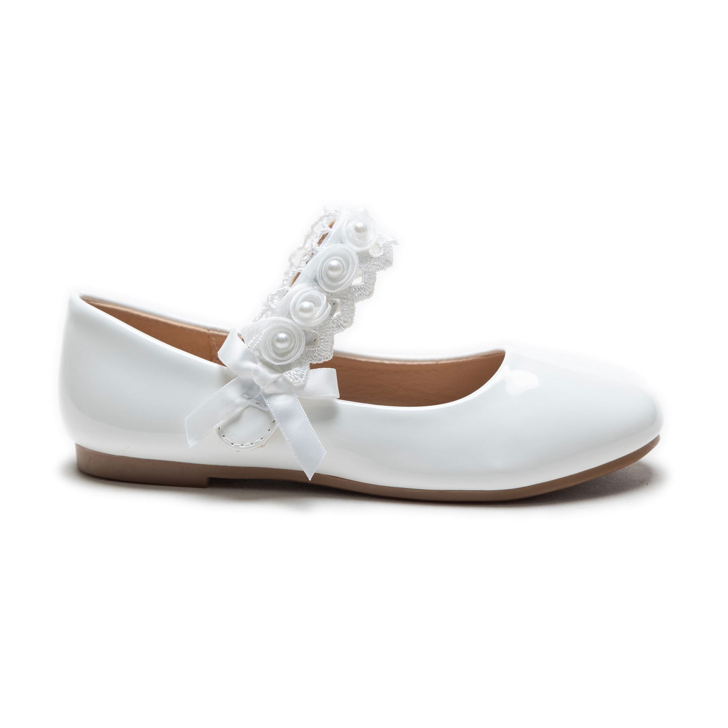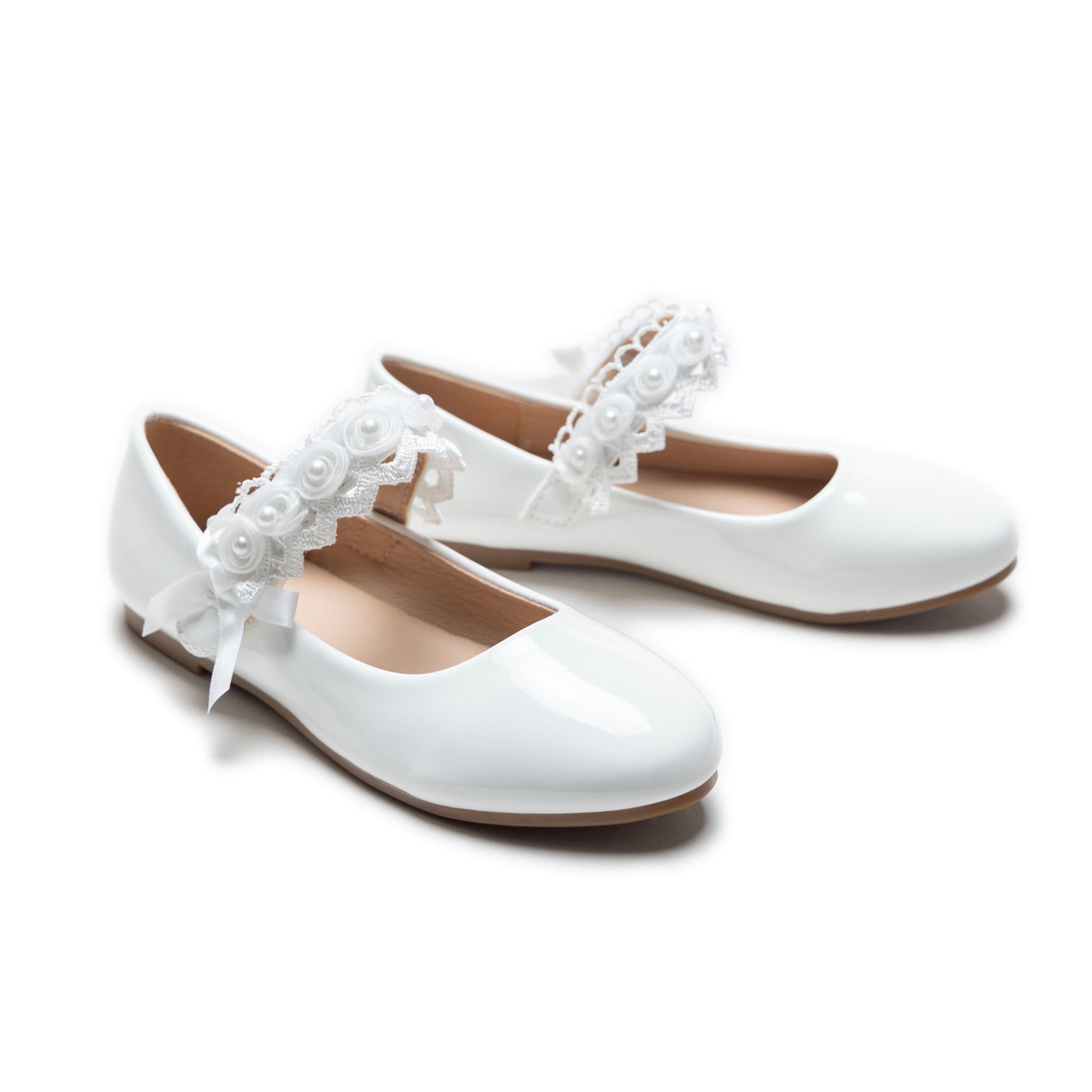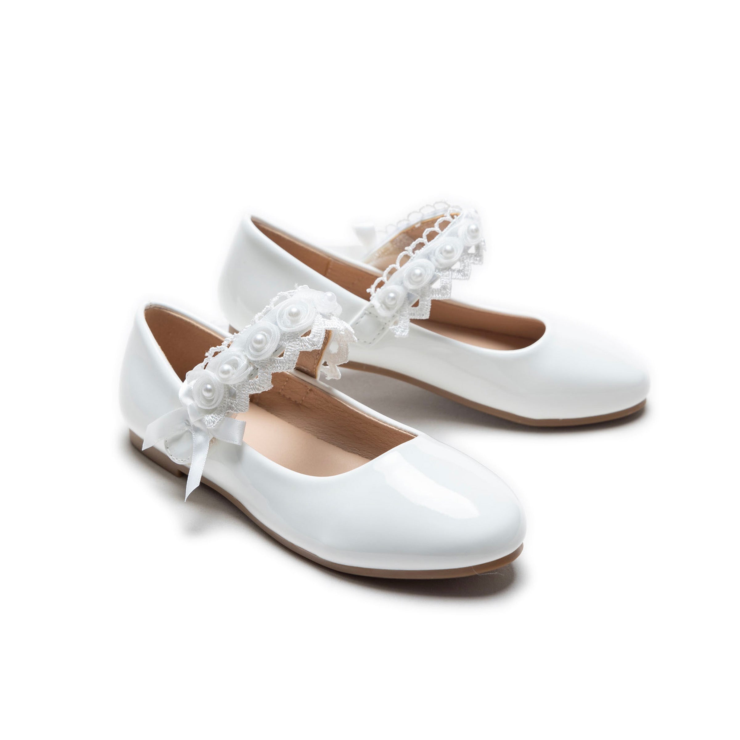 White Patent Rose Pearl Doily Flats