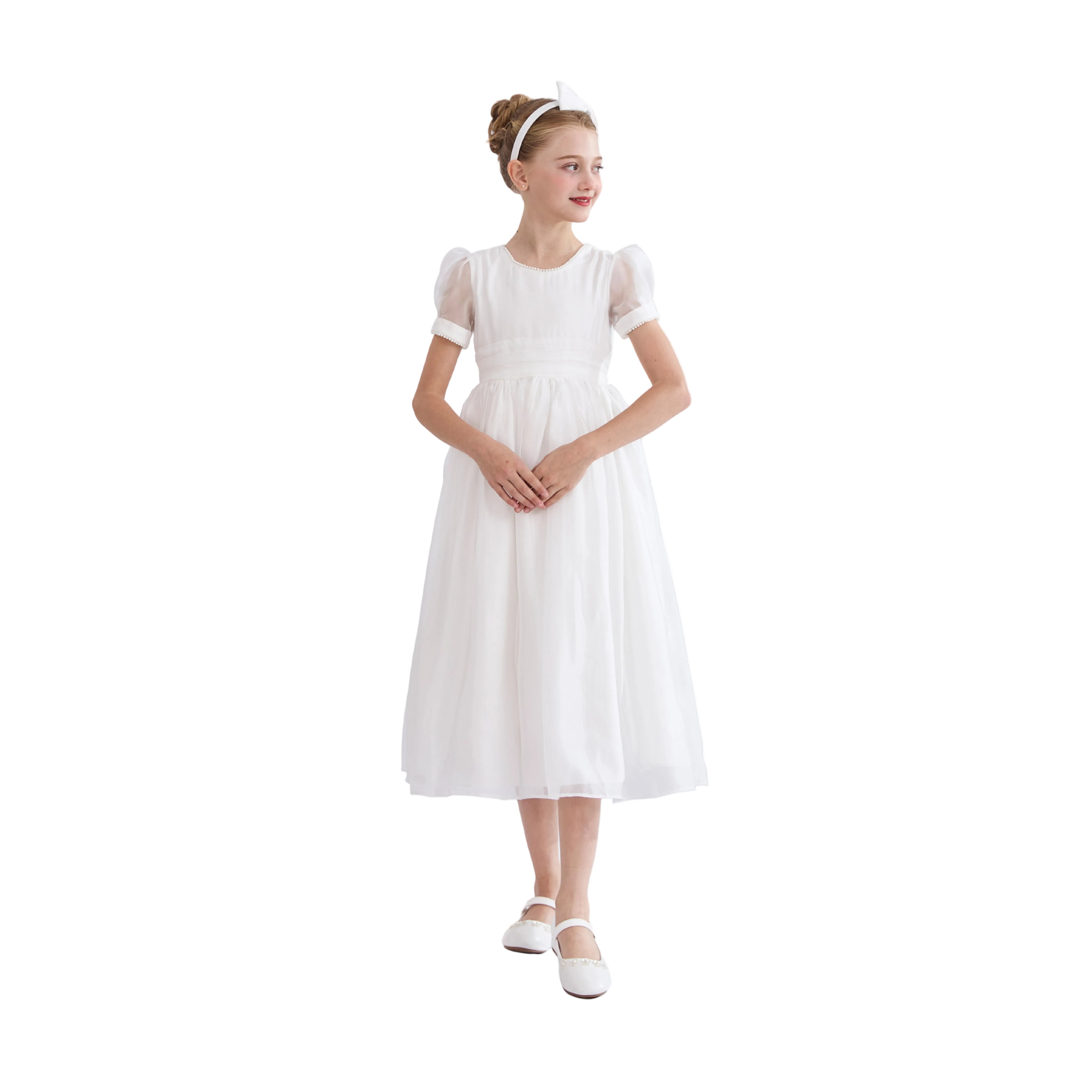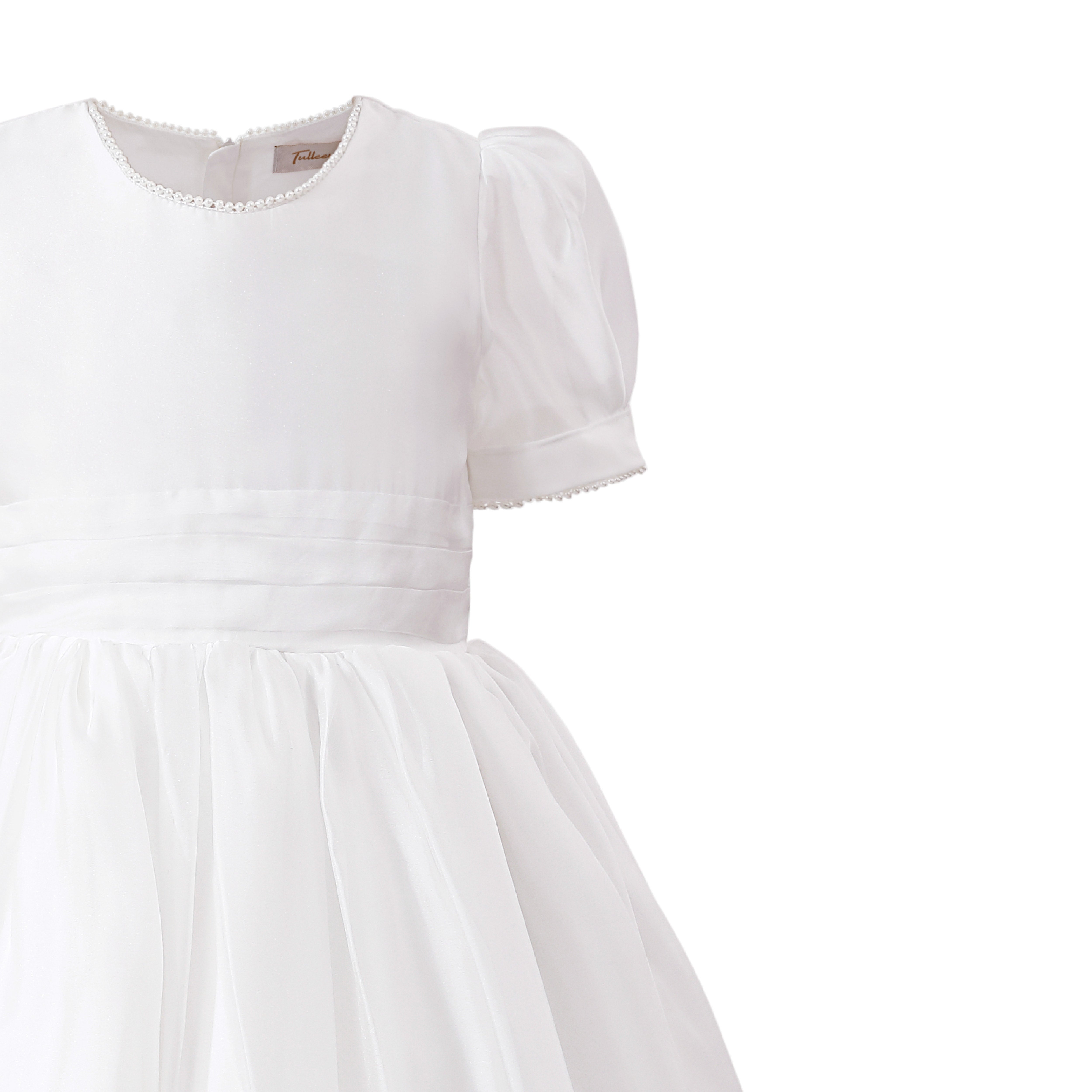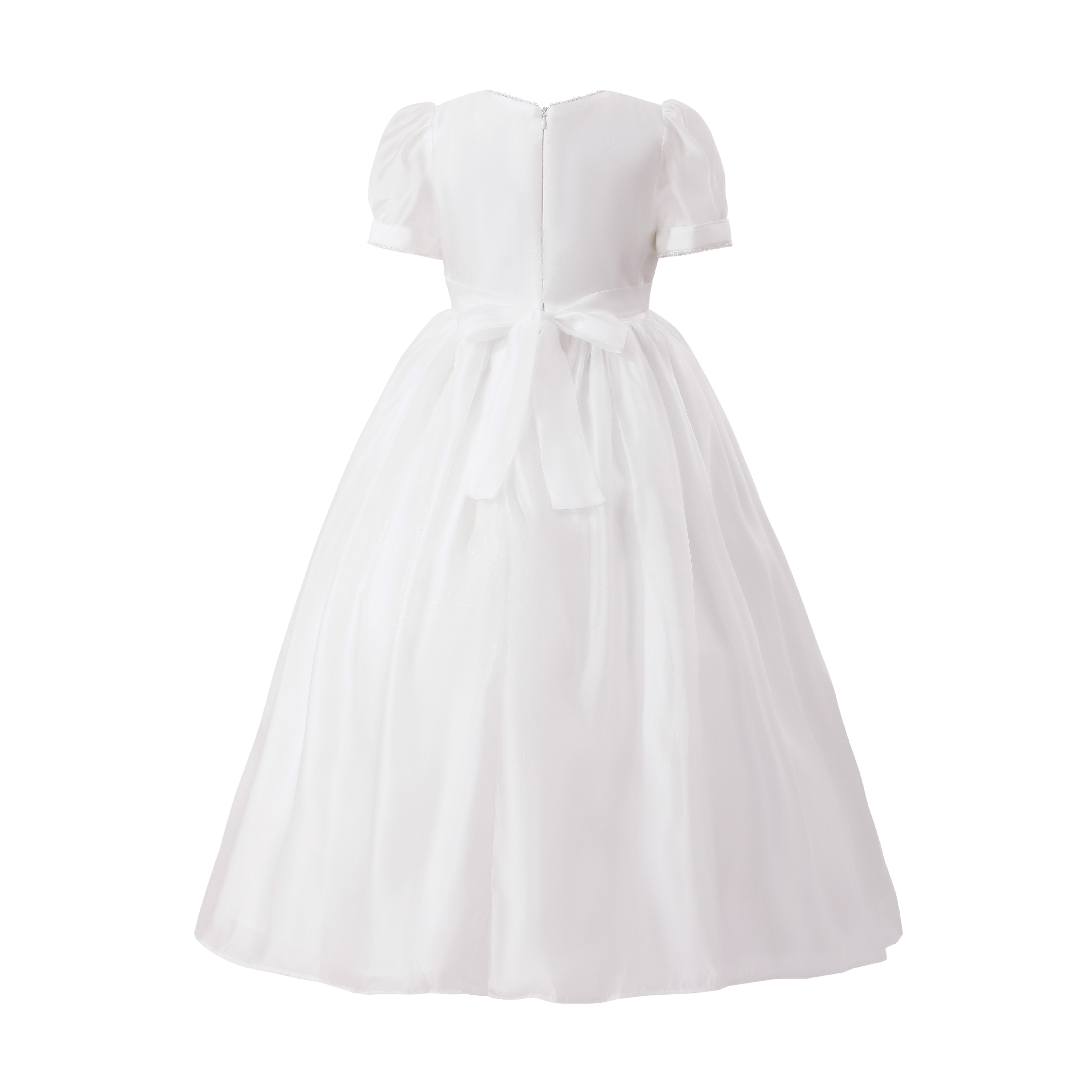 A graceful occasion dress designed with timeless elegance, perfect for weddings, communions, or formal ceremonies. Crafted with lightweight layers for a voluminous silhouette and a polished finish.